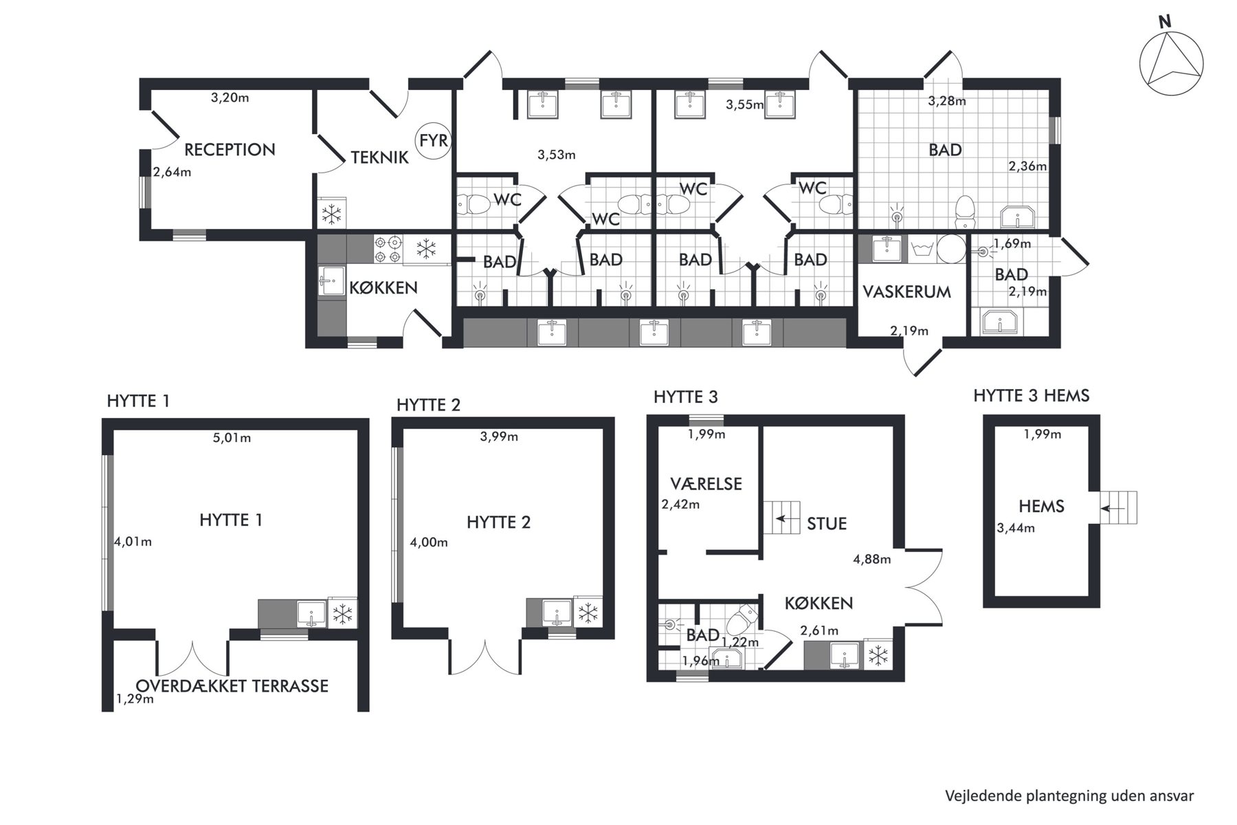 Sådan ser det ud i dag, men der er selvfølgelig masser af muligheder for at ændre konceptet, hvis I eksempelvis vil have flere hytter, pladser til telte og autocampere eller måske lave en restaurant/café/bar. Muligheder er der nok af.
