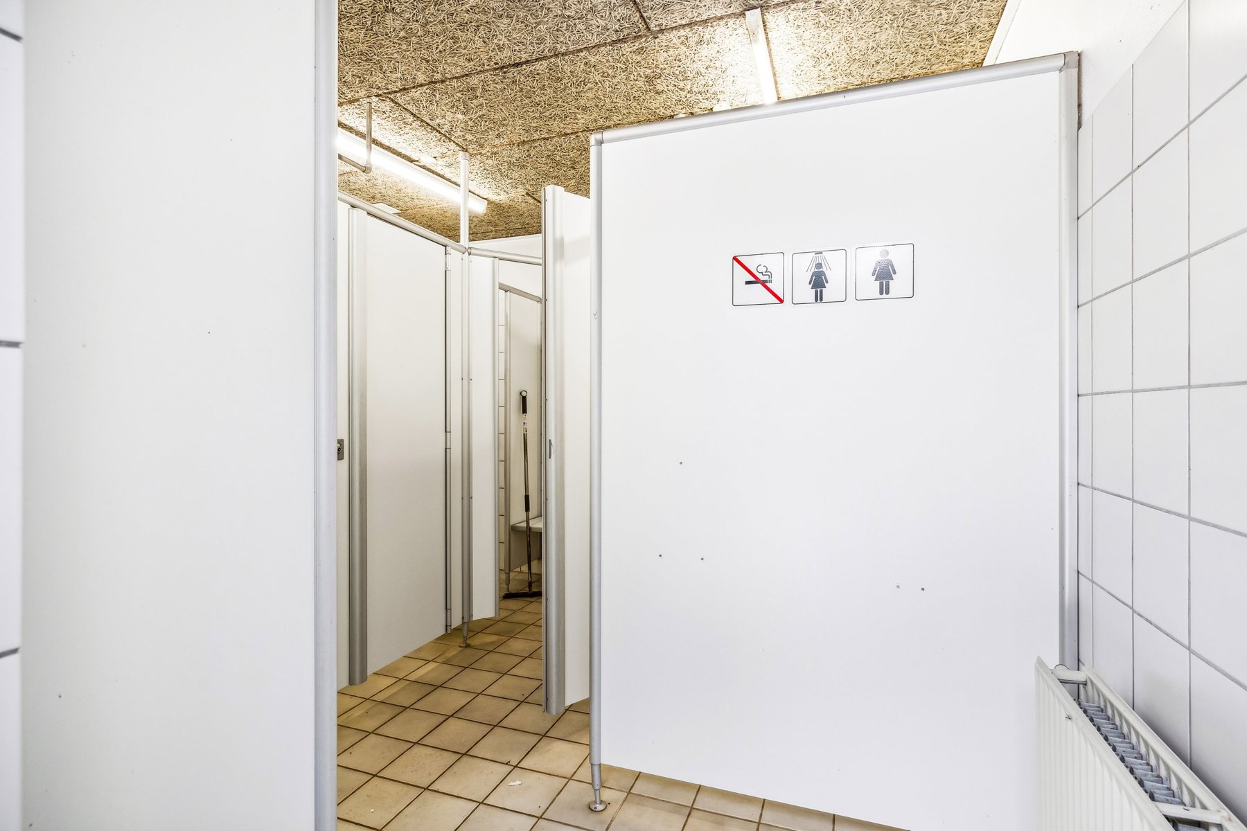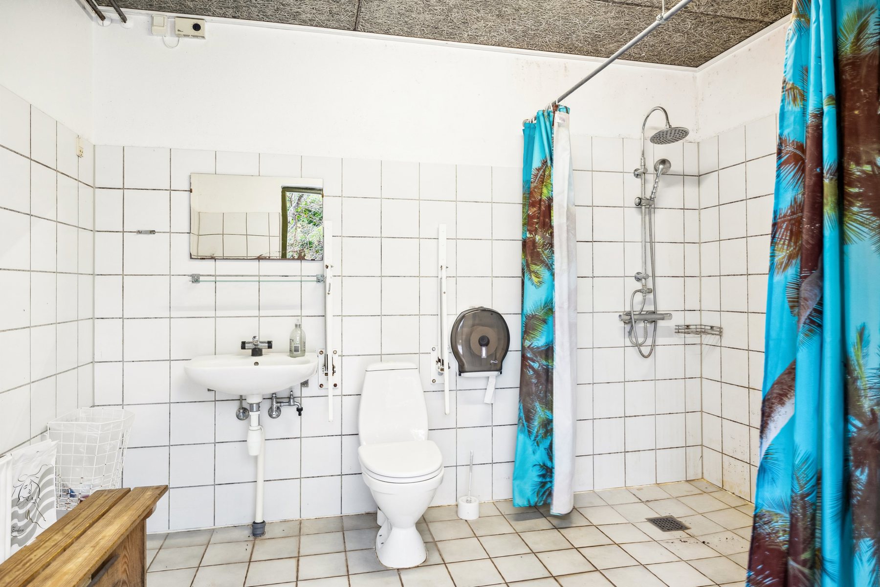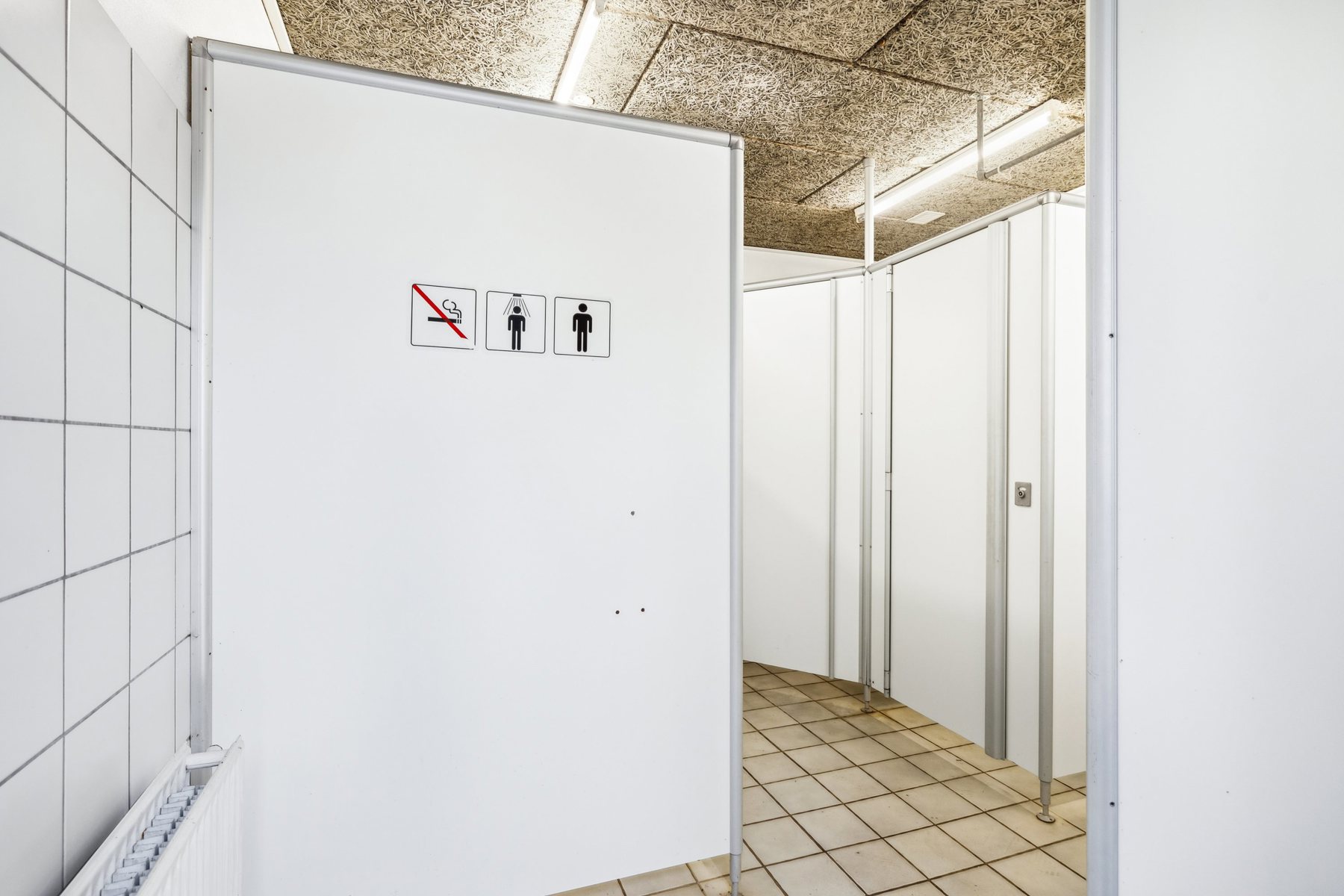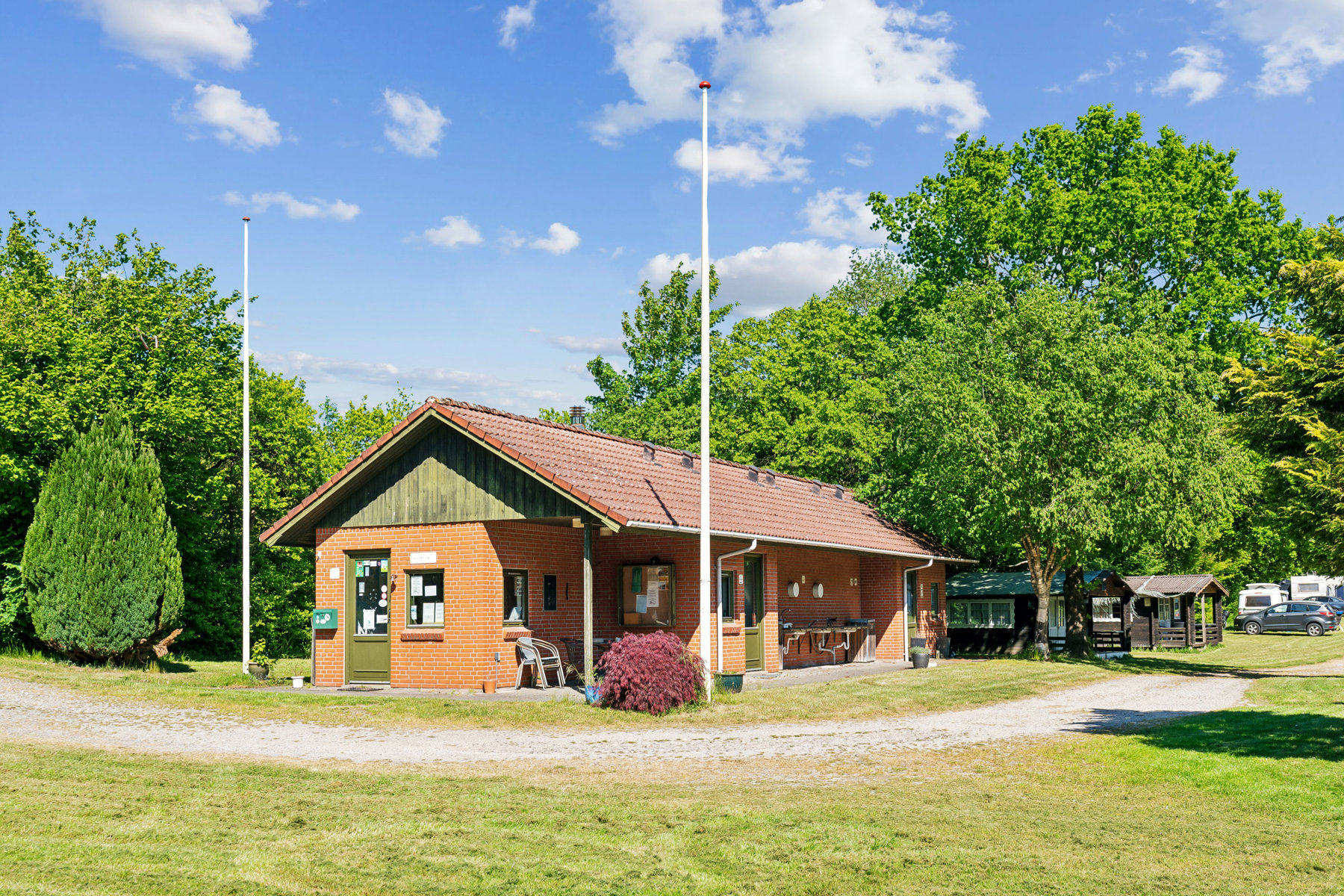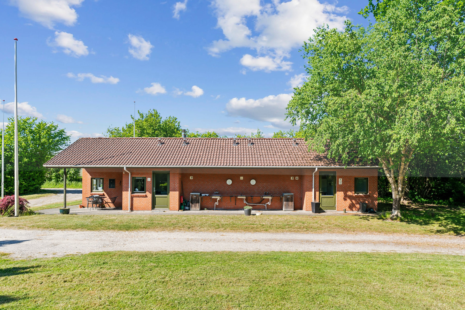 Pladsens fællesfaciliteter er ligeledes i pæn og brugbar stand. De ligger samlet i én bygning og består af to toilet- og baderum (M/K), hertil et stort og et mindre baderum, et vaskerum samt et køkken. Endelig er det også her receptionen og fyr- og teknikrummet er placeret.
