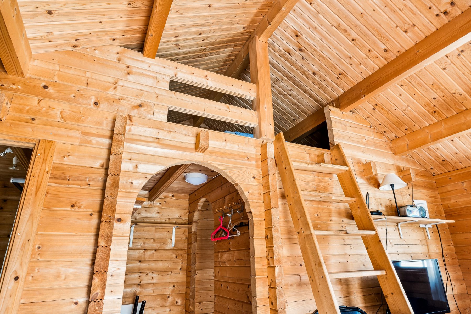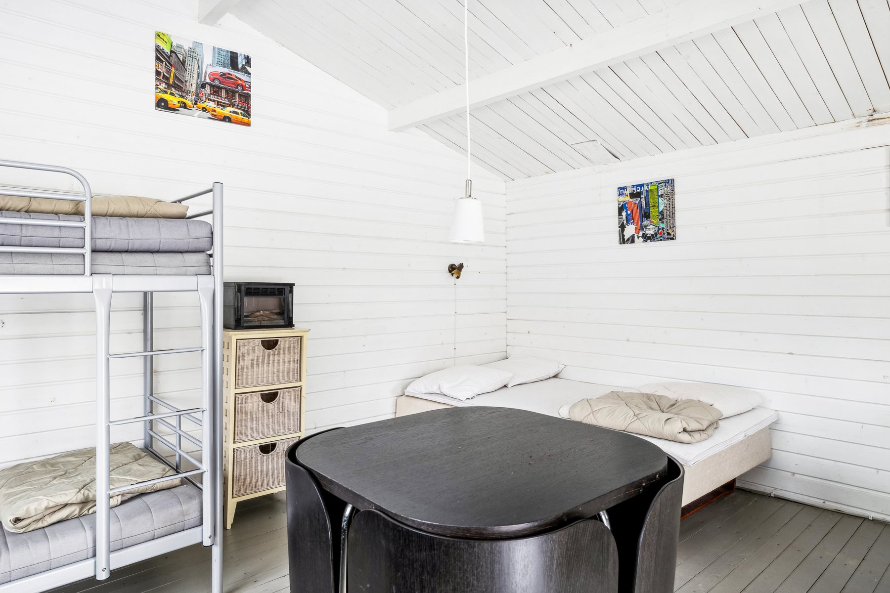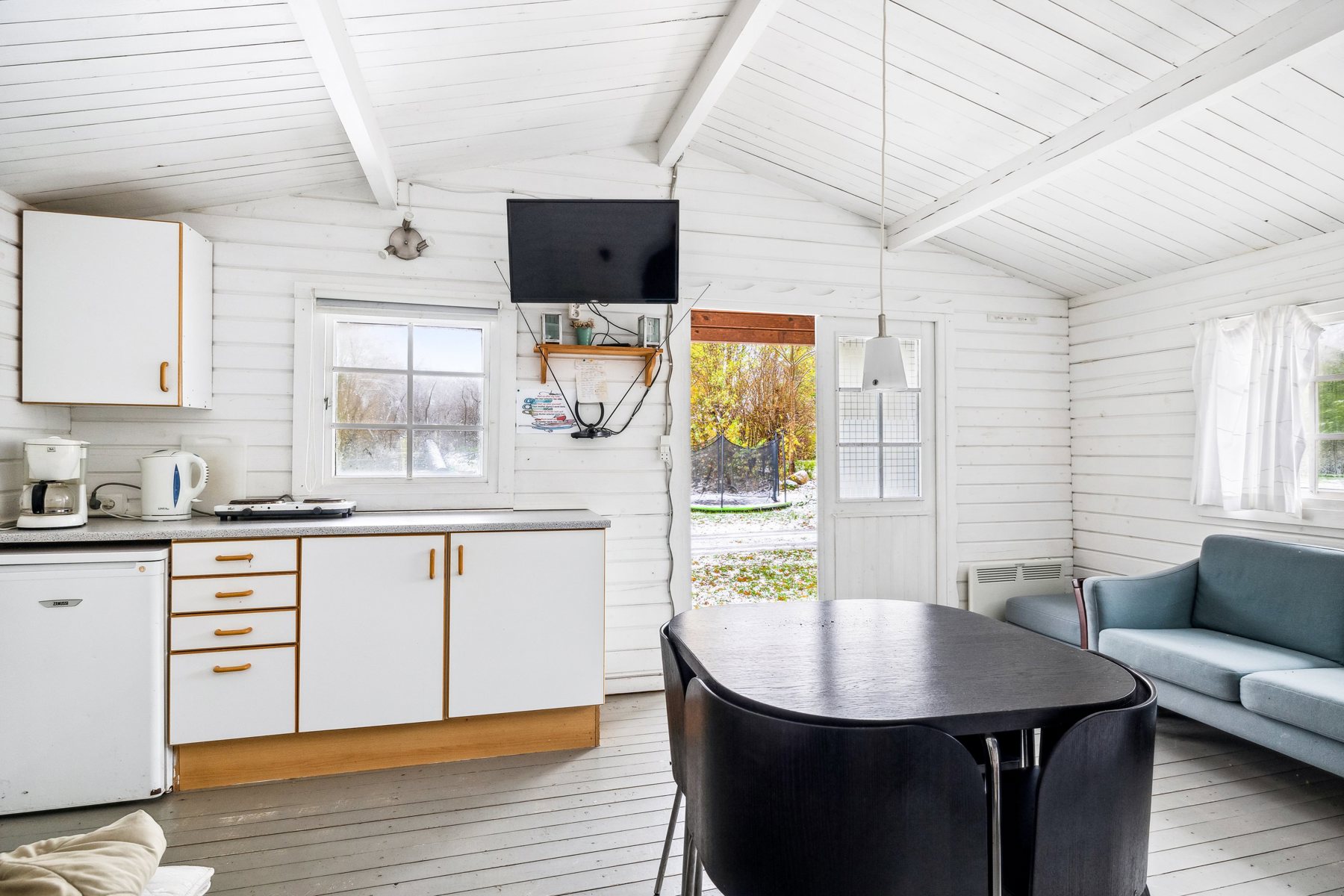 Alle tre hytter fremstår i nydelig og velholdt stand. De to mindste hytter trænger dog til at få nyt tag, men er derudover i fuldt anvendelig stand. De har begge tekøkken, fire sovepladser, sofa og spisebord samt en veranda. Den største af hytterne er den nyeste og blev bygget i 2016. Den har eget badeværelse, separat soverum samt en hems.