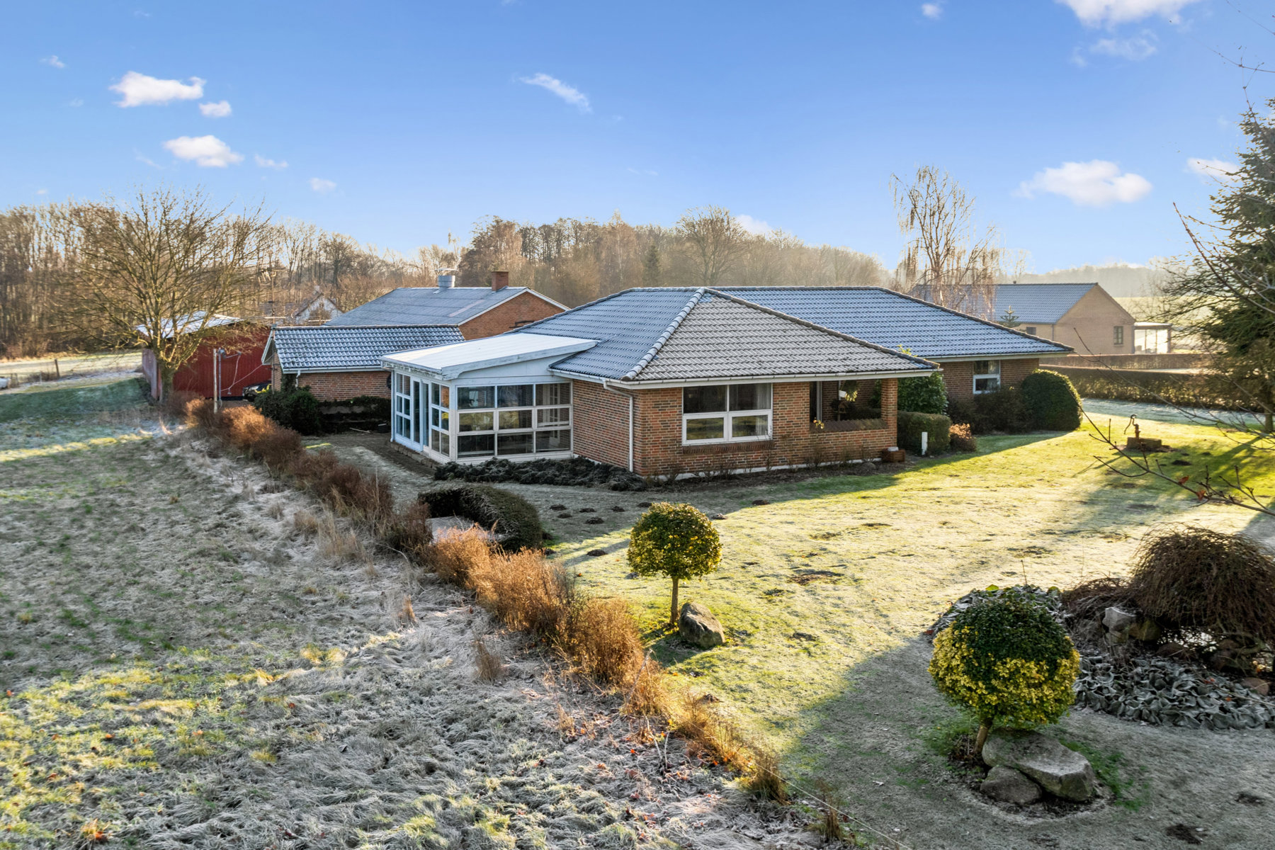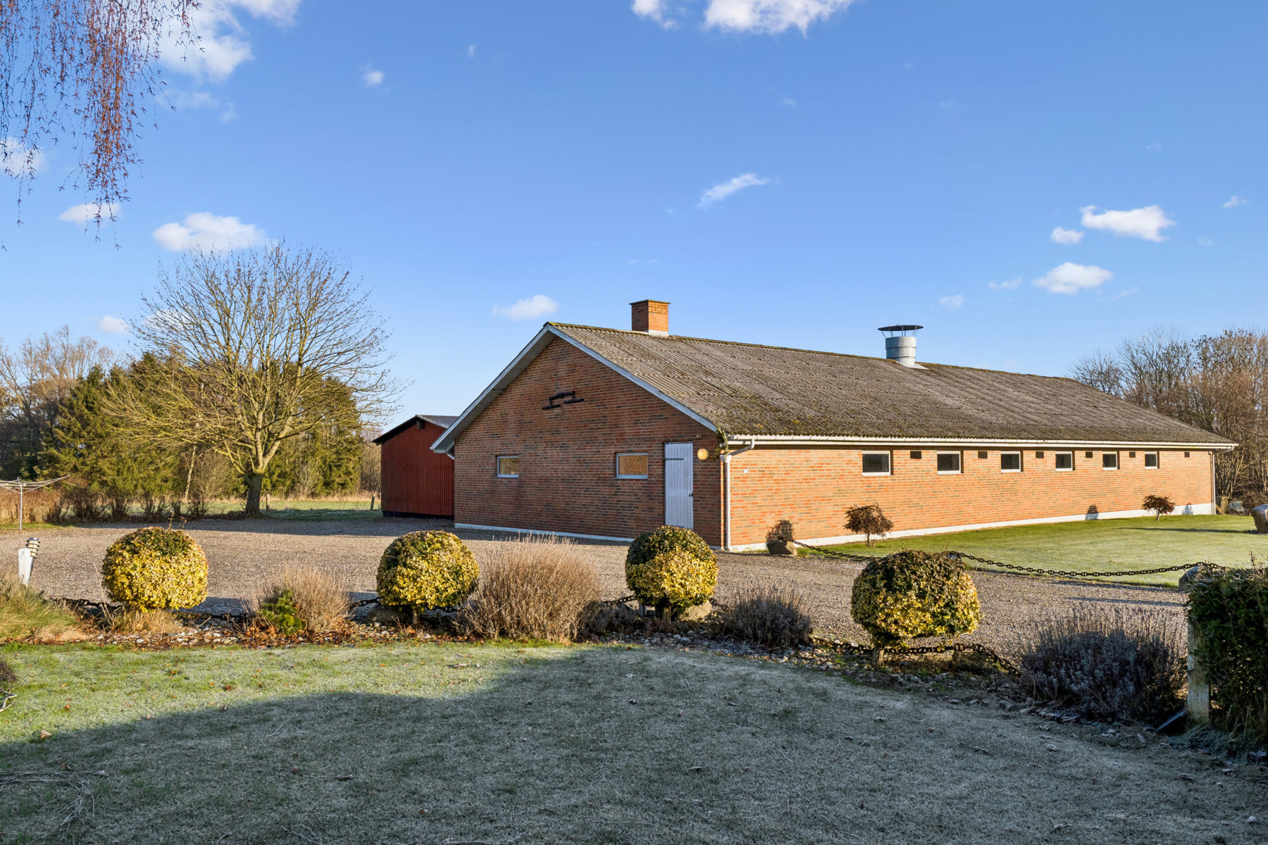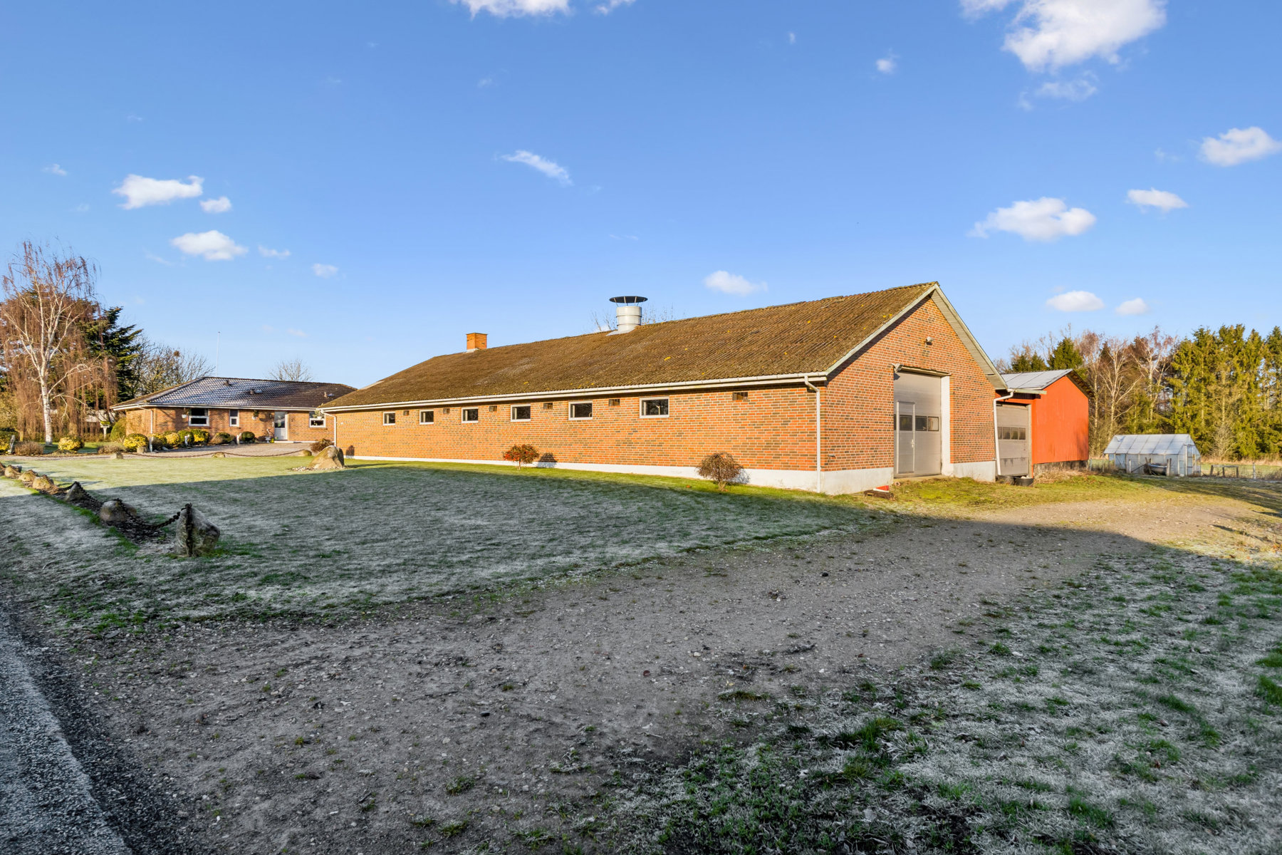 Ejendommen består af stuehuset på 173 m2, som er sammenbygget med den medfølgende carport. Matriklen måler 31.624 m2 og byder, foruden den store have, på en stor græsmark samt et stykke skov, hvor vandløbet Bredemose Rende flyder igennem. Overfor stuehuset ligger to store, sammenbyggede udhuse med en garage i midten, som tilbyder mange spændende muligheder, hvad enten I er interesserede i dyrehold, eller I har interesse i at etablere kontor, værksted eller har behov for opbevaring. I forbindelse med dyrehold kan I indhegne den store græsmark, så den kan bruges til afgræsning.