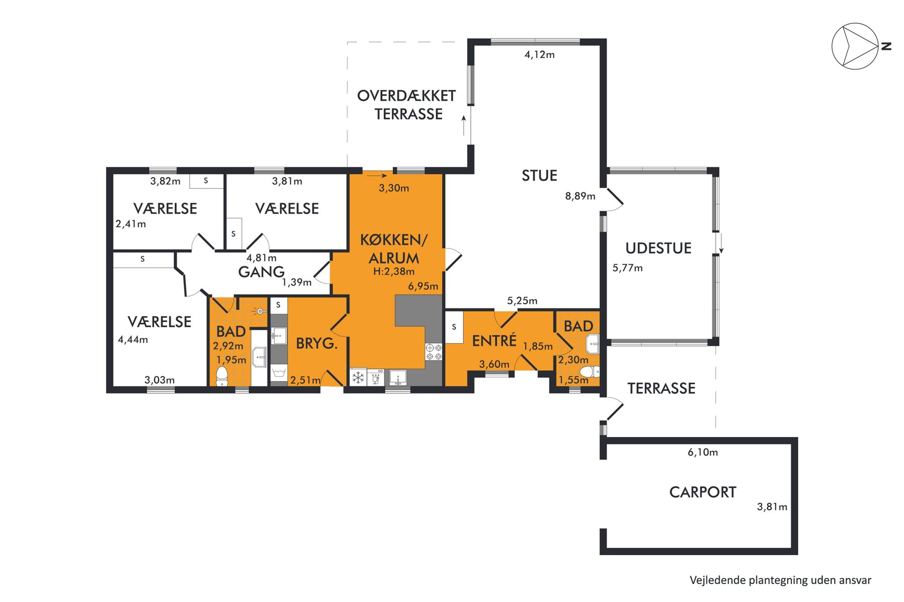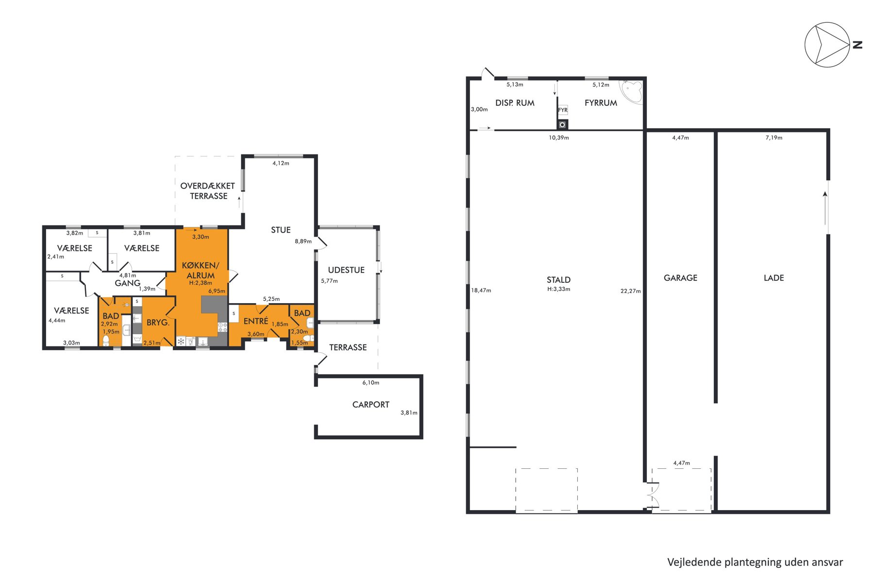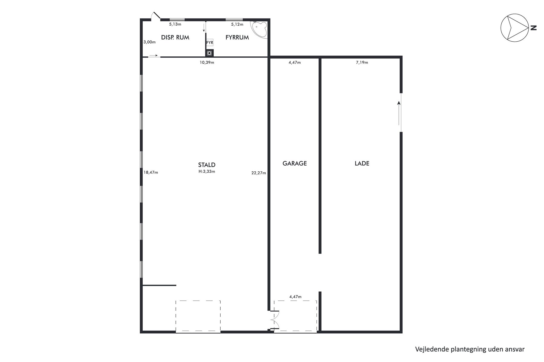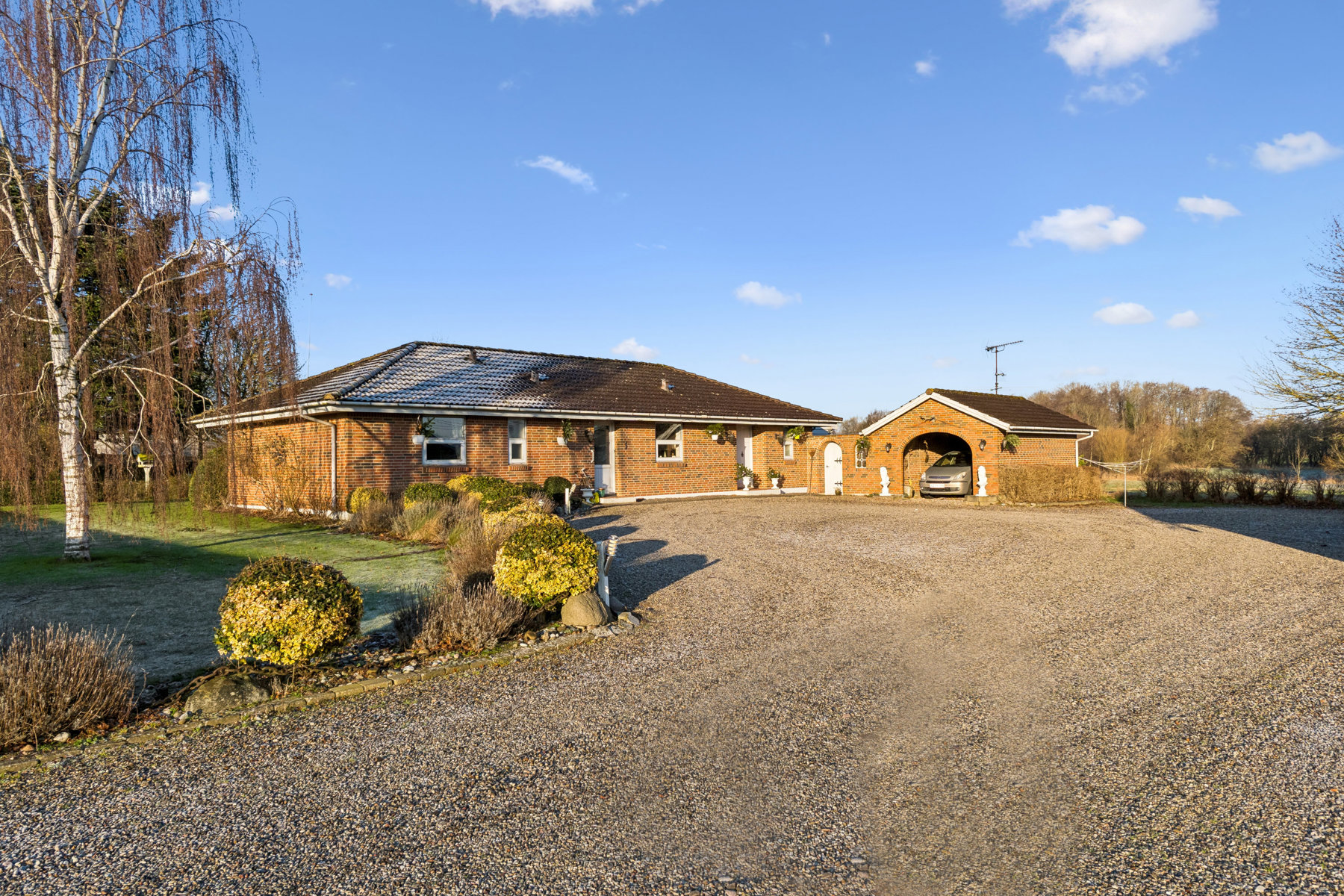 Ejendommen består af stuehuset på 173 m2, som er sammenbygget med den medfølgende carport. Matriklen måler 31.624 m2 og byder, foruden den store have, på en stor græsmark samt et stykke skov, hvor vandløbet Bredemose Rende flyder igennem. Overfor stuehuset ligger to store, sammenbyggede udhuse med en garage i midten, som tilbyder mange spændende muligheder, hvad enten I er interesserede i dyrehold, eller I har interesse i at etablere kontor, værksted eller har behov for opbevaring. I forbindelse med dyrehold kan I indhegne den store græsmark, så den kan bruges til afgræsning.