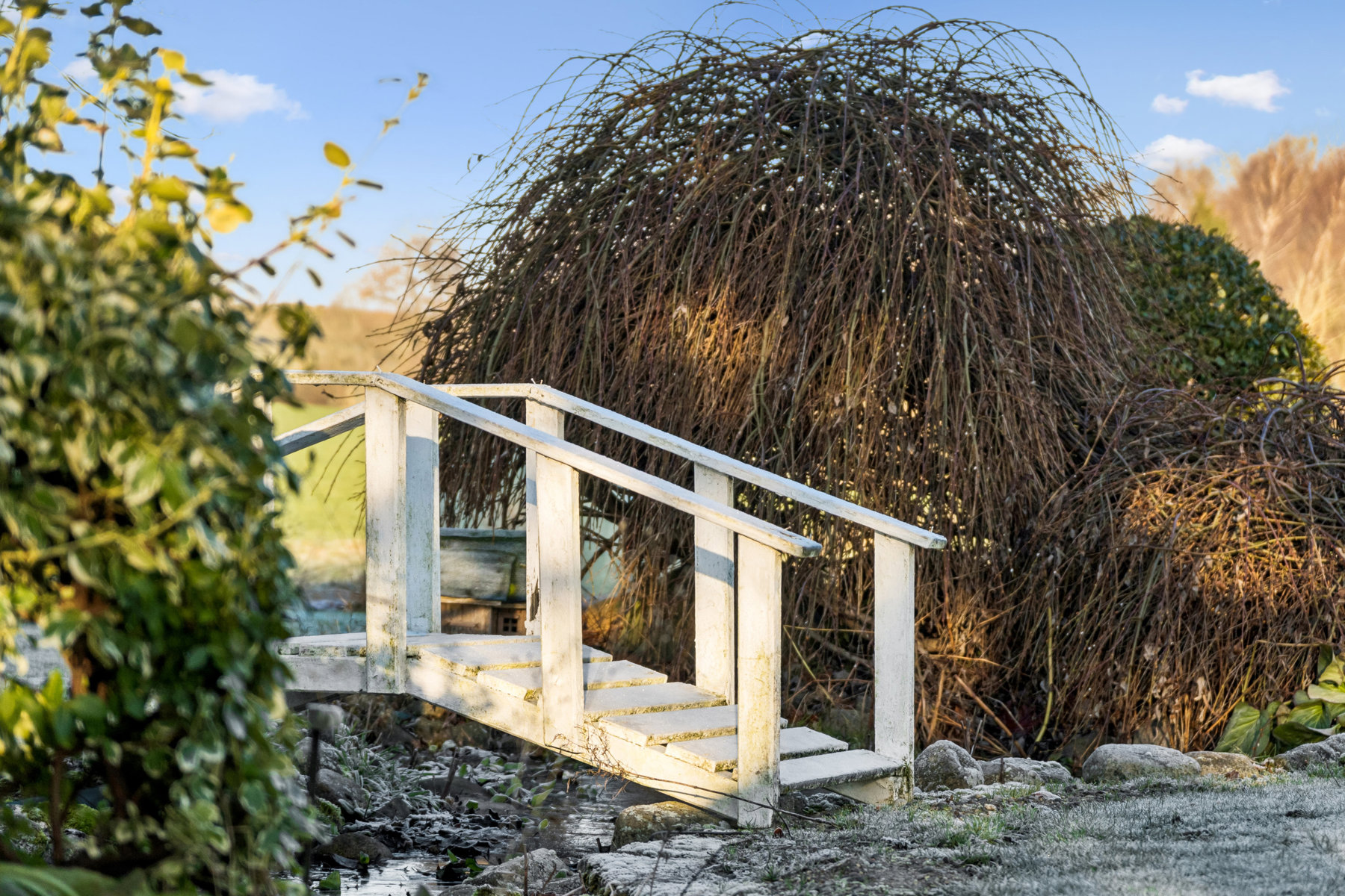 I får også en dejlig have, som er pænt og overskueligt anlagt. Her også en havedam med bro og på den anden side af huset en stor gårdsplads med vendeplads.