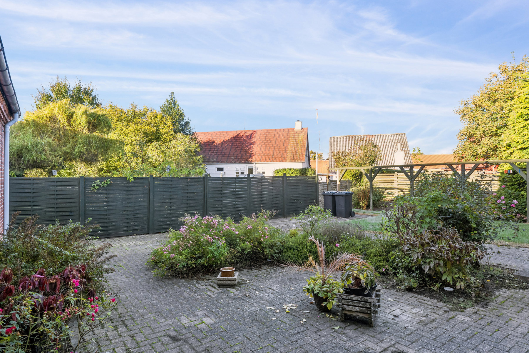 Udendørs venter en nem og overskuelig grund på 479 m², med en lille græsplæne, fliseterrasse og enkelte buske og træer. Der er desuden mulighed for at etablere flere parkeringspladser bag huset.