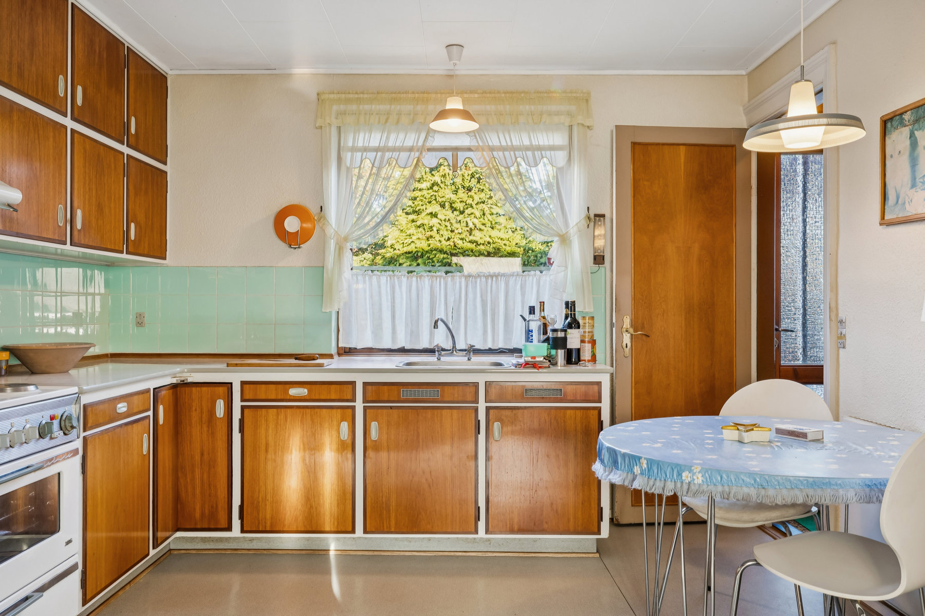 Indretningen i stueplan består af et charmerende køkken med originale låger og retrodetaljer, et badeværelse, en hyggelig vinkelstue god plads til både spisestue og sofahjørne samt det gamle butikslokale, som i dag fungerer som en forstue til boligen.