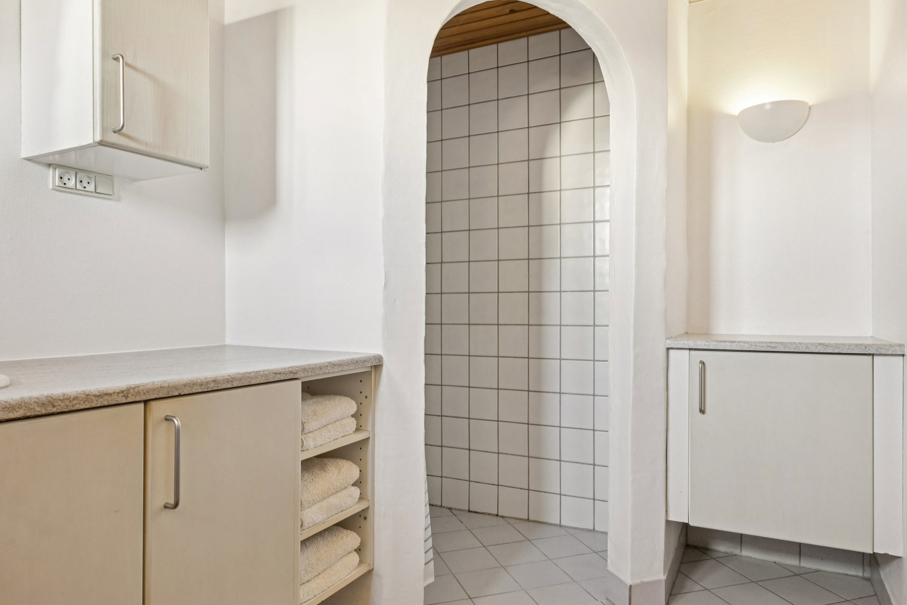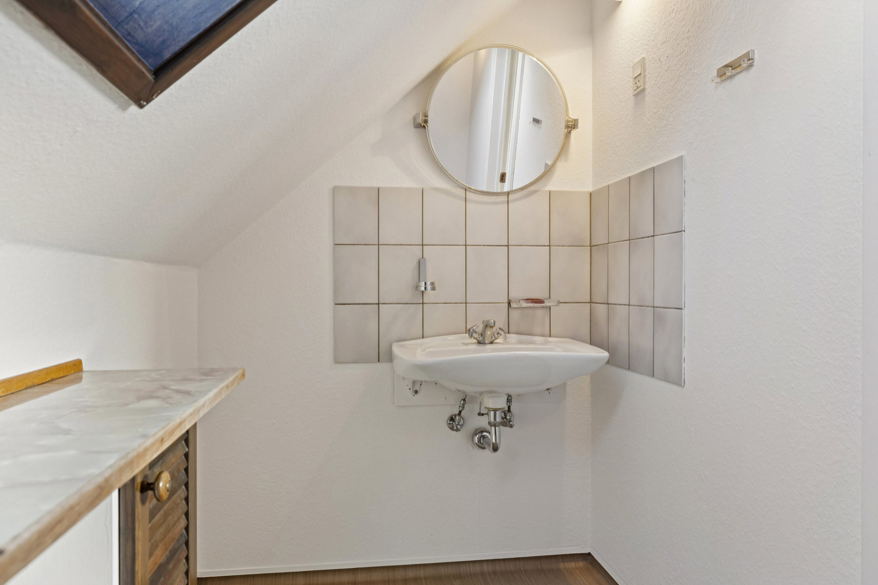 I stueplan er boligen indrettet med en vinkelstue, der får godt med lys fra to sider. Herfra følger et fint spisekøkken med et godt bryggers i forlængelse. I får også et rummeligt badeværelse samt et soveværelse, der pt. er midt i et renoveringsprojekt, som skal færdiggøres før det kan anvendes.