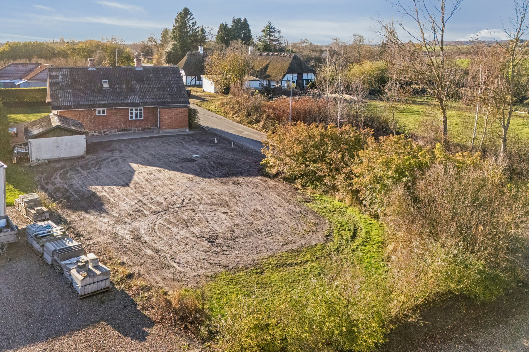 Huset ligger på en 1.099 m2 grund, der består af to matrikler, som for nyligt er sammenlagt. Grunden er som helhed meget overskuelig, og der er gjort klar til, at I kan skabe et uderum efter egne ønsker.