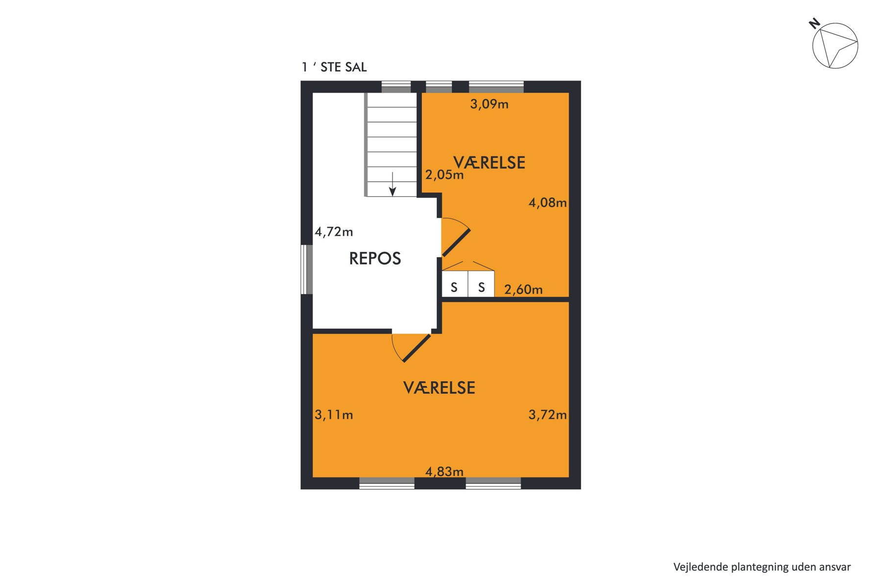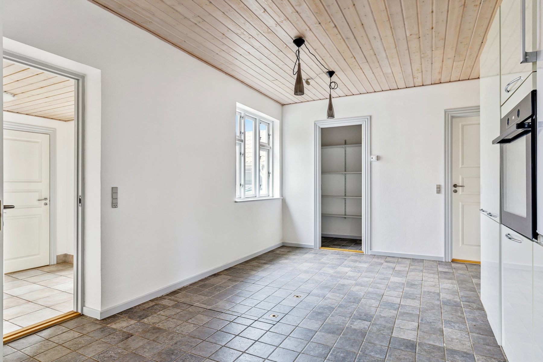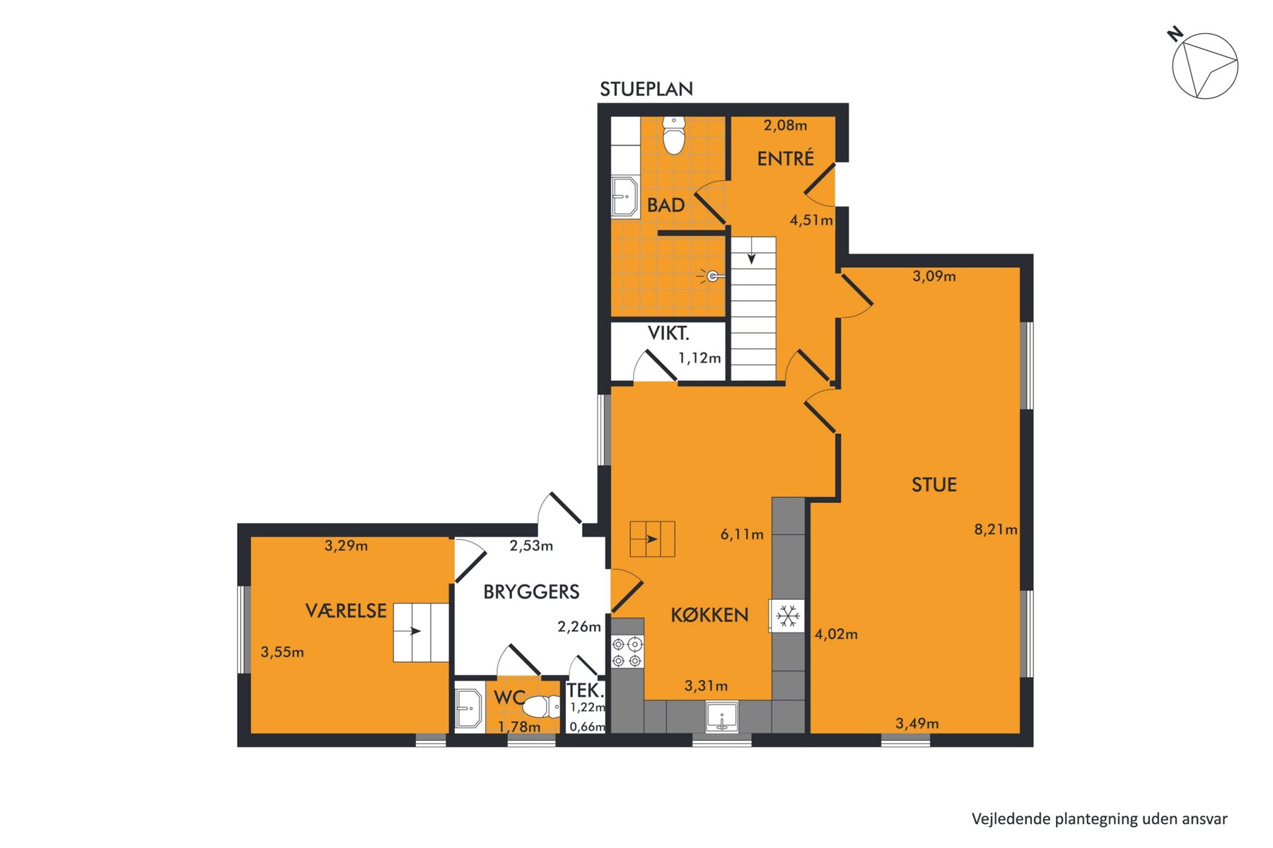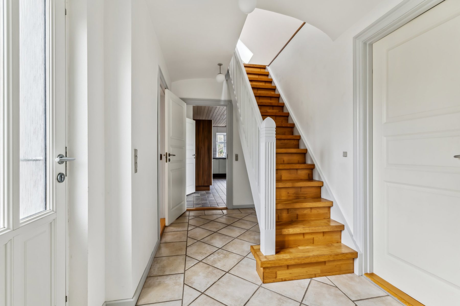 Stueplan byder på en lys og rummelig entré, et flot badeværelse samt et stort og lyst køkken med klinkegulv og masser af skabsplads. Herudover rummer etagen en hyggelig stue med parketgulv, et praktisk spisekammer, et bryggers, et gæstetoilet og et soveværelse med hems – ideelt som forældresoveværelse eller gæsteværelse.På førstesalen finder du en stor repos, der kan bruges som kontor eller legeområde, samt to gode værelser, perfekte til børneværelser eller hobbyrum.