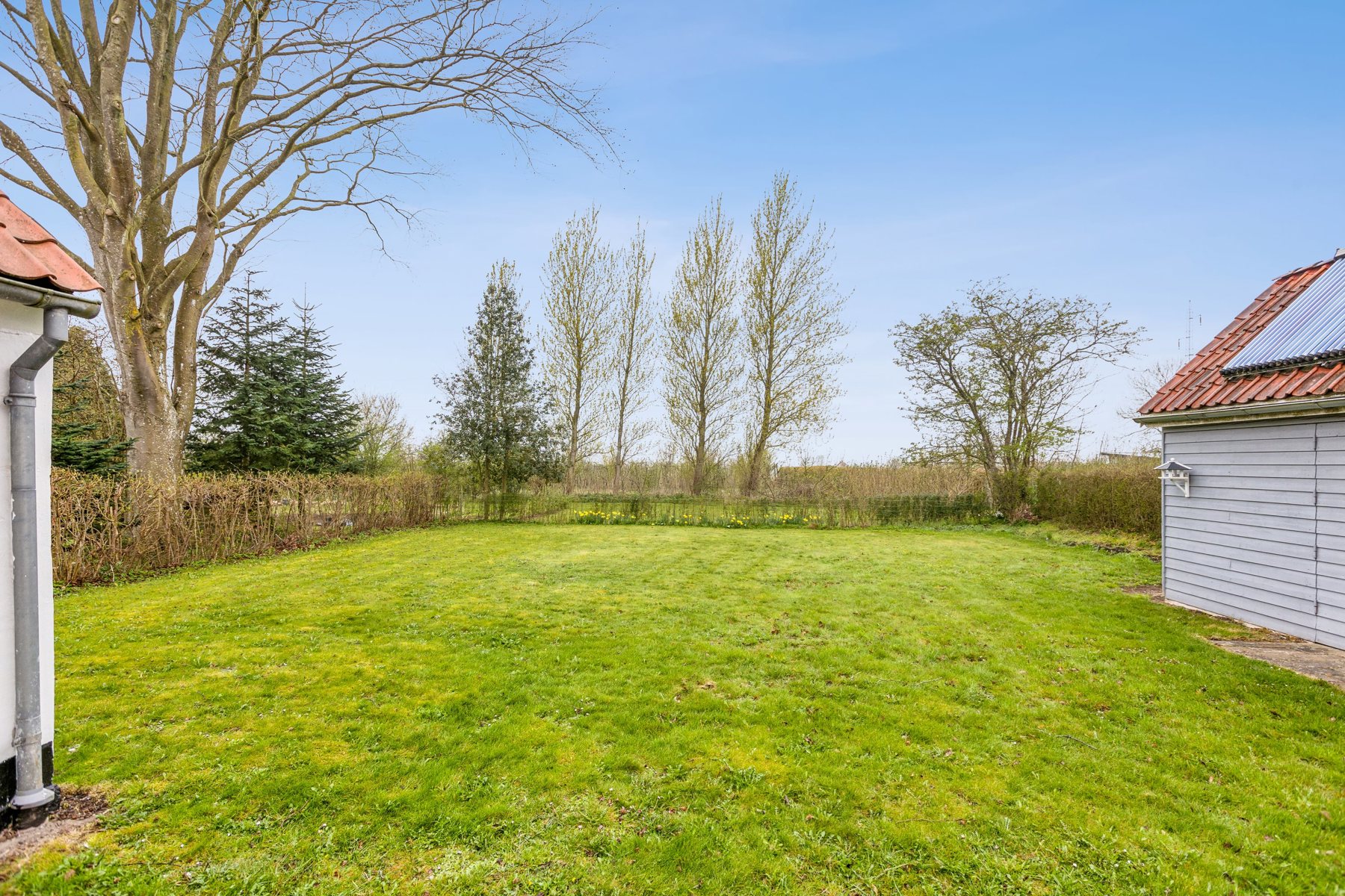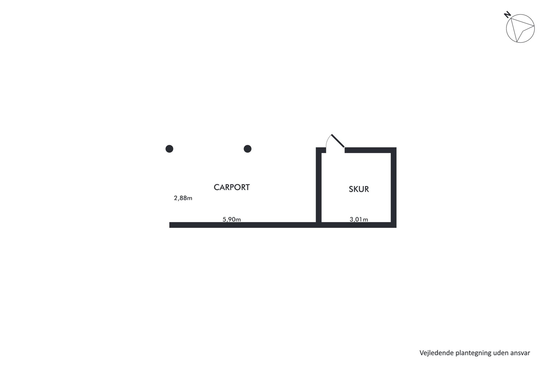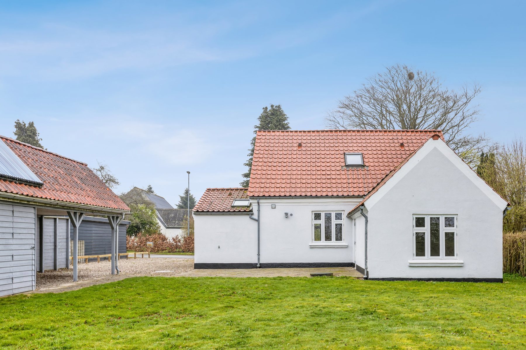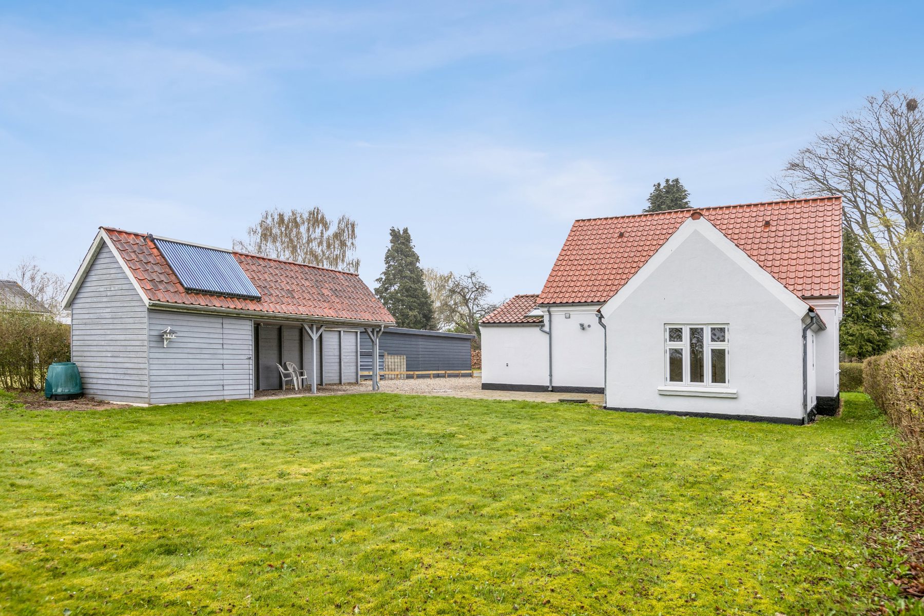 Grunden er nem at holde med en sydvestvendt have, der primært består af græs – oplagt til leg, afslapning eller etablering af en hyggelig terrasse. Til ejendommen hører også en carport med indbygget redskabsskur på i alt 28 m², opført i 1994 og med solfangeranlæg på taget.