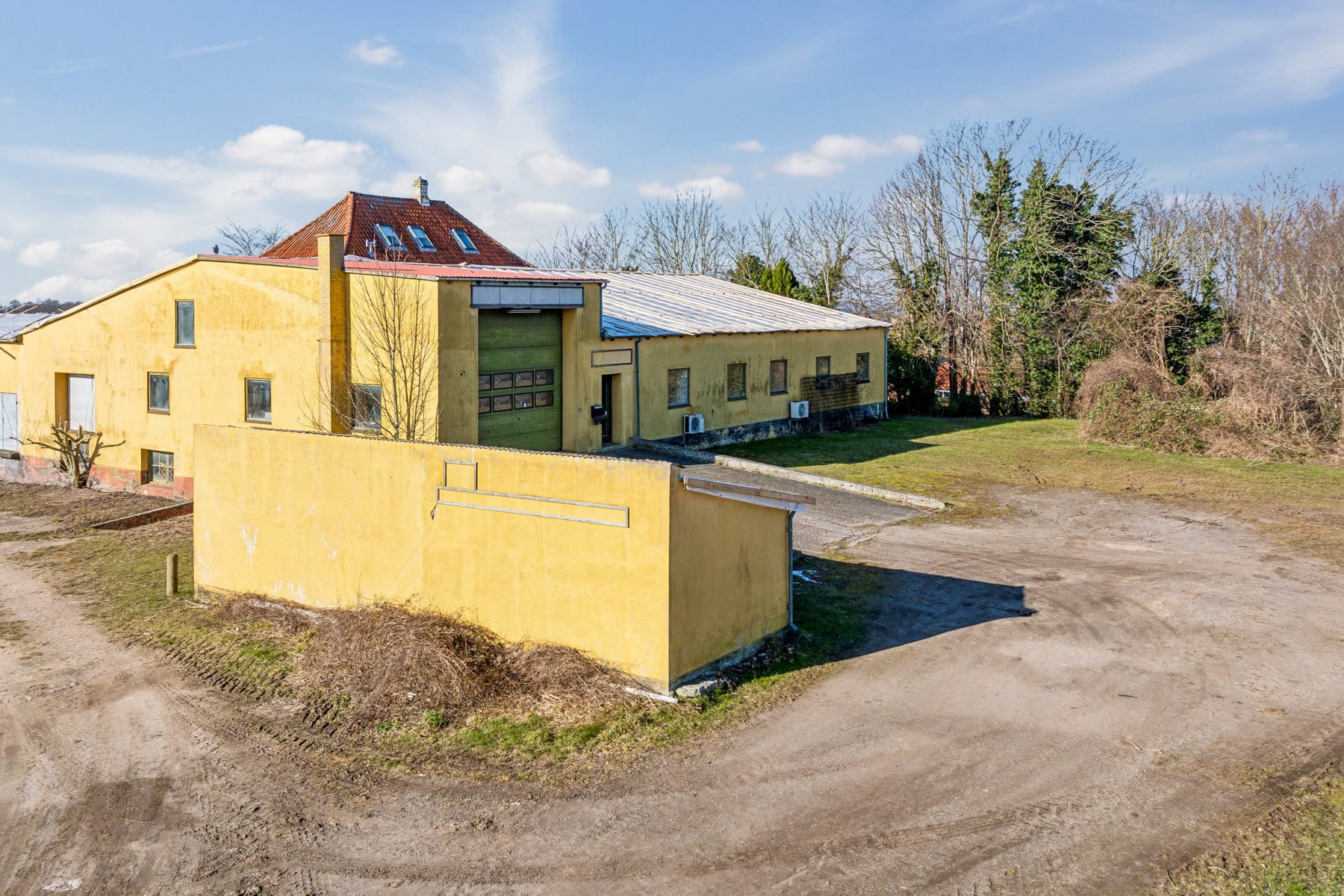 Udover boligen rummer ejendommen en garage på 38 m², udhusbygninger på hele 615 m² samt en kælder på 1.230 m². Her er der uanede muligheder for erhverv eller kreative projekter. Asbesttaget på udhusbygningerne er allerede fjernet, så de er klar til at få lagt nyt tag. Alternativt kan bygningerne fjernes og give plads til en stor, parklignende have, en lille privat skov eller måske frastykning af to selvstændige byggegrunde.
