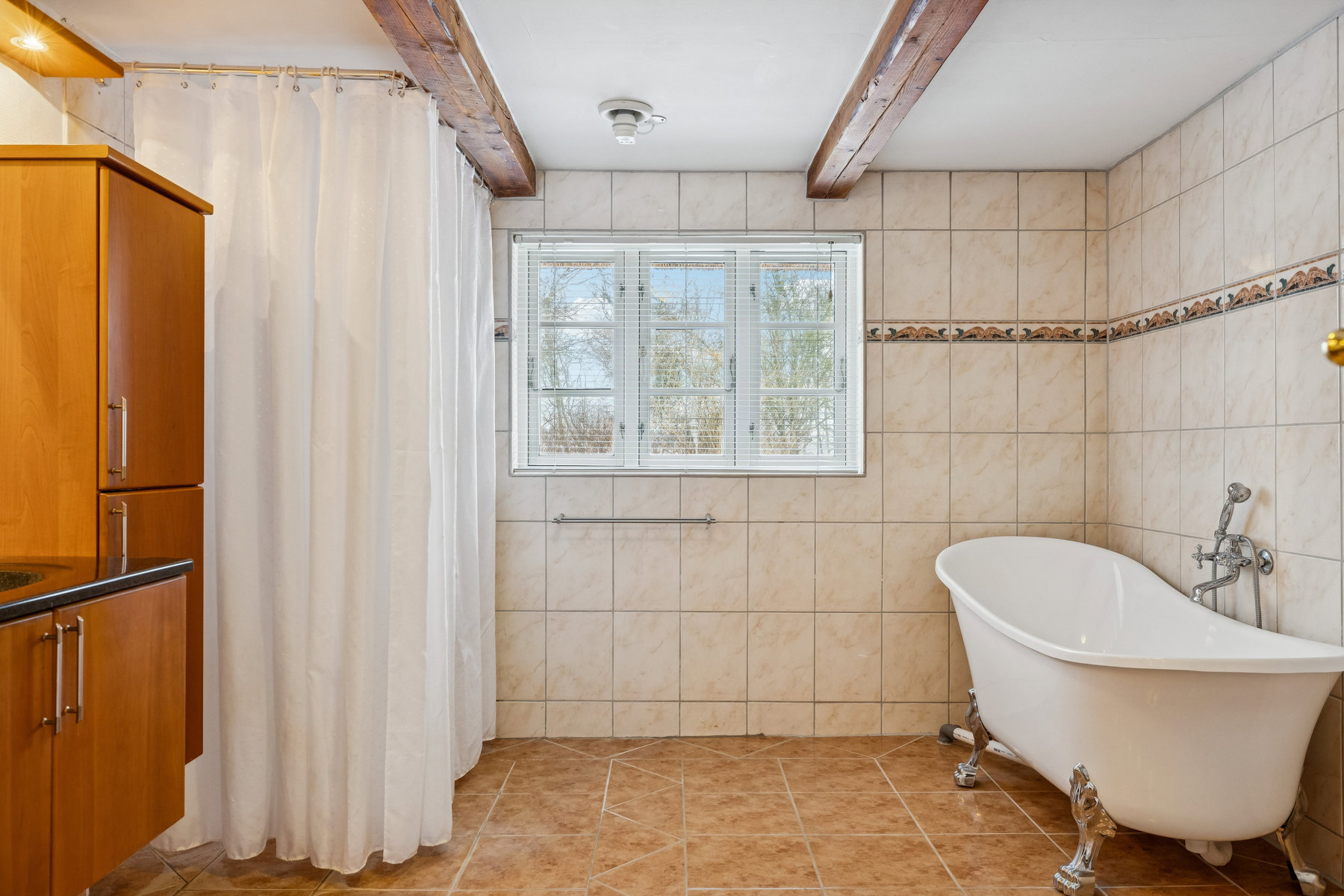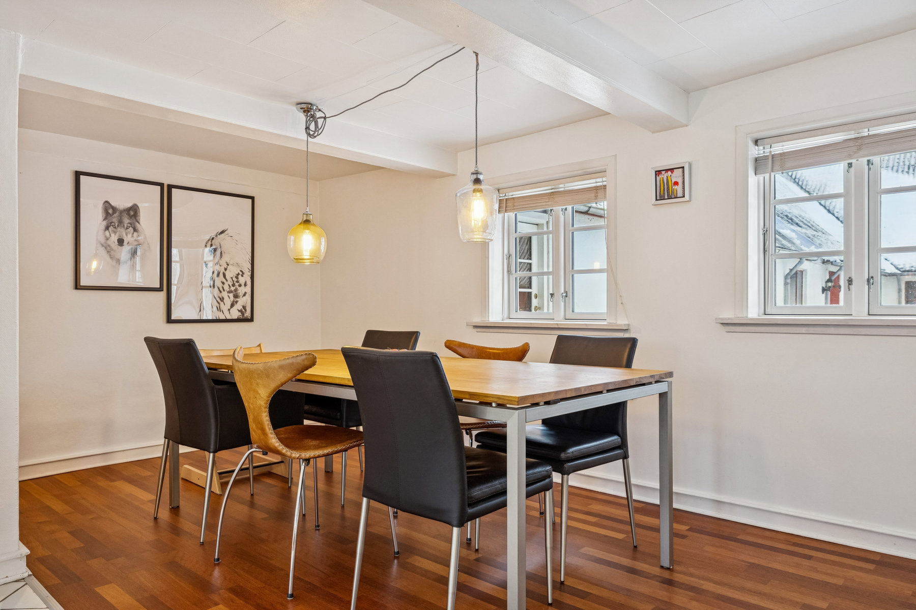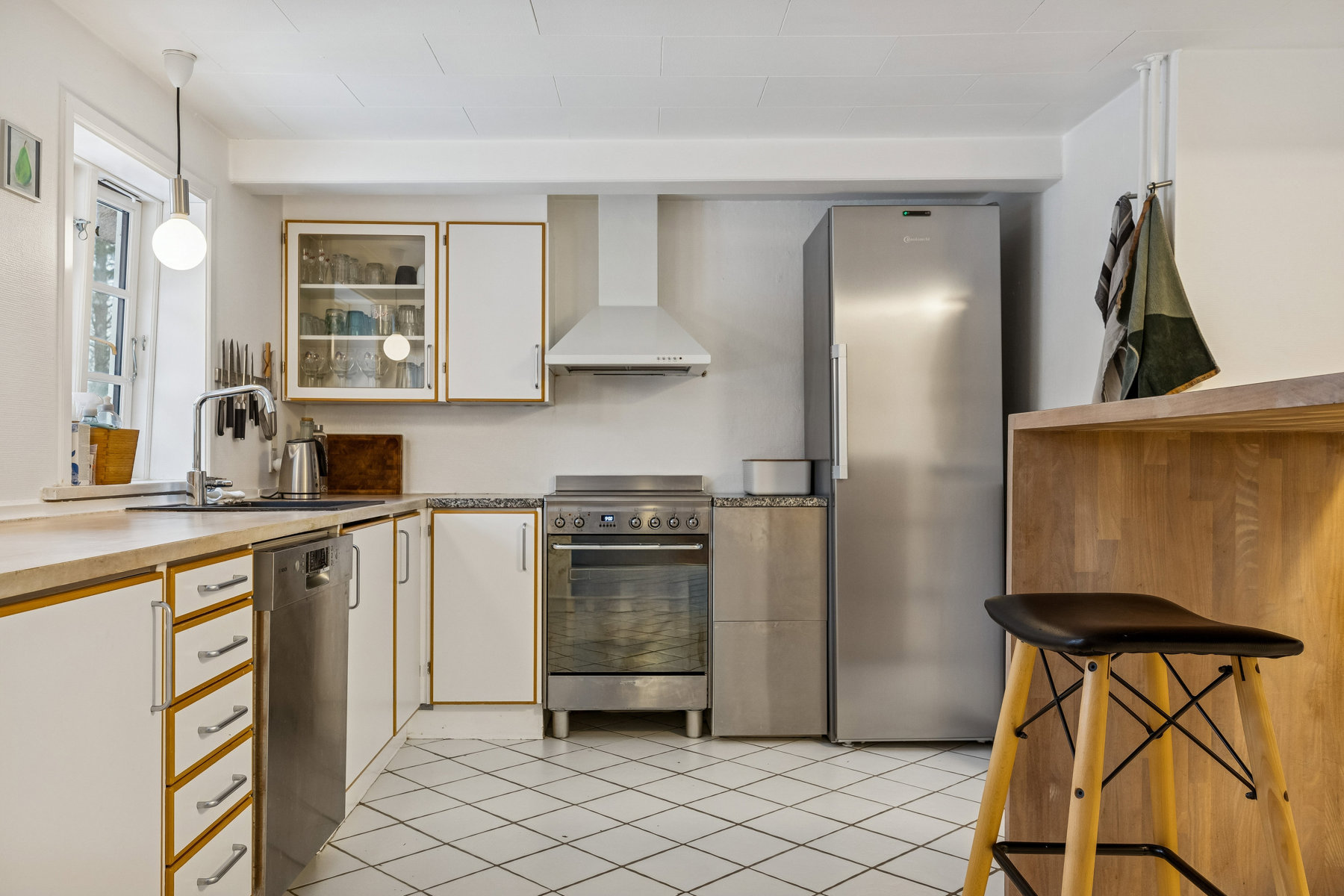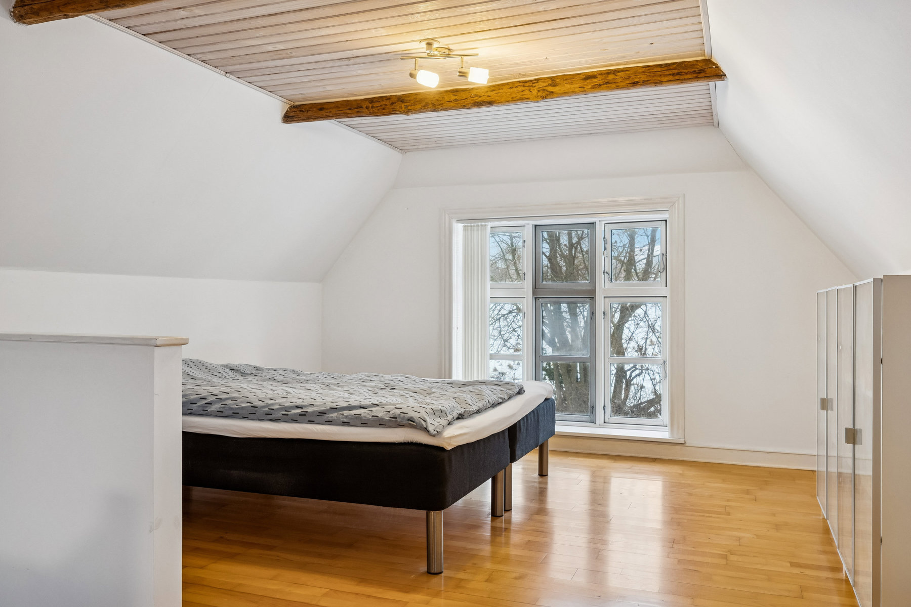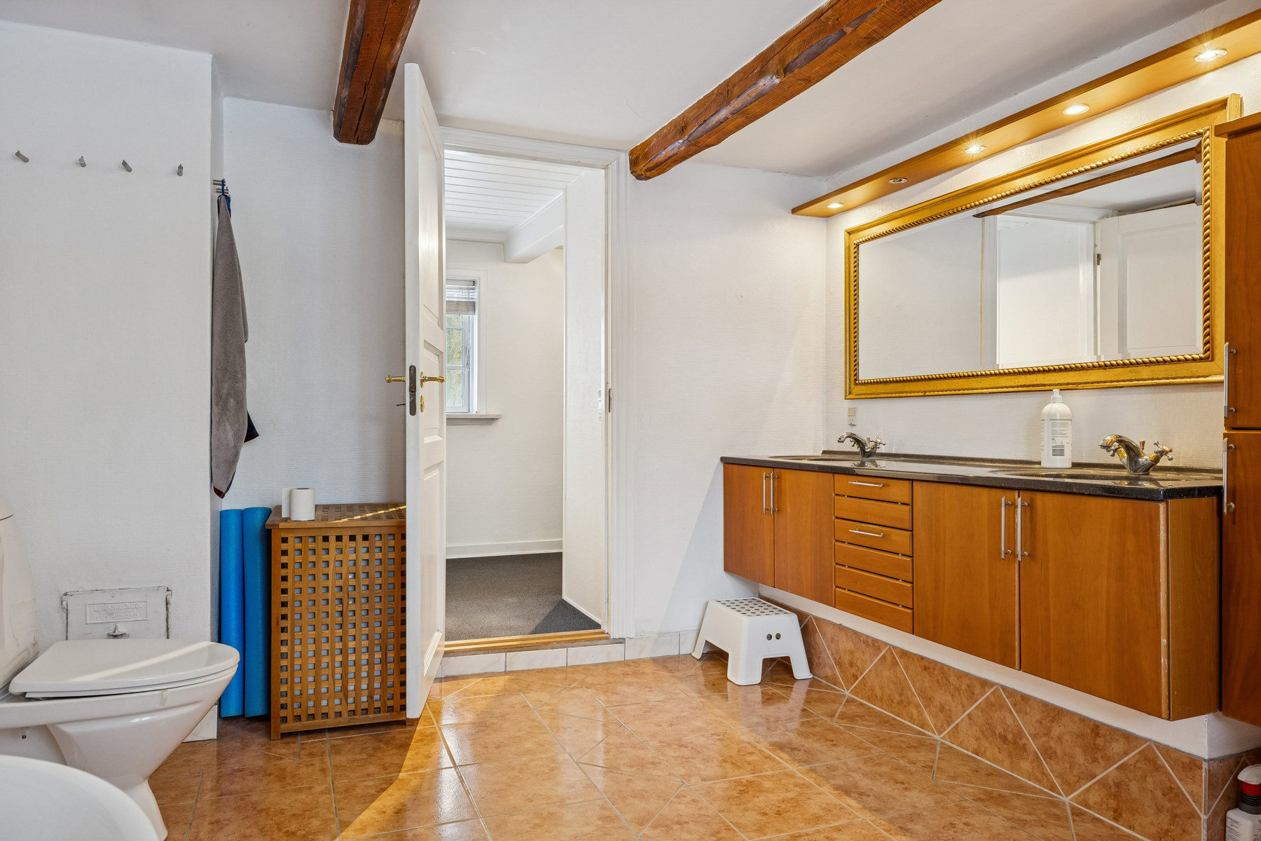 Indvendigt fremstår boligen hyggelig og stemningsfuld med synlige loftsbjælker og den helt rette landlige atmosfære. Planløsningen er rummelig og fleksibel med to køkkener, to badeværelser, fire soveværelser, spisestue, to stuer og bryggers. Hertil kommer en førstesal med et stort soveværelse samt et uudnyttet loftsrum. Indretningen giver gode muligheder for den pladskrævende familie, for flere generationer under samme tag eller for dig, der ønsker at kombinere bolig og liberalt erhverv.