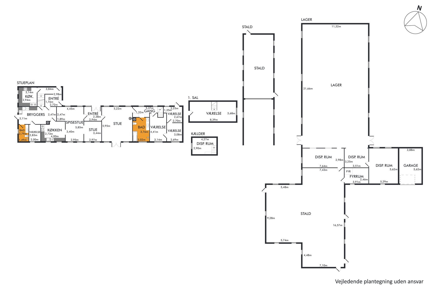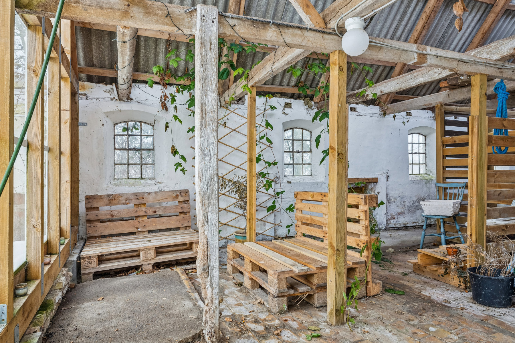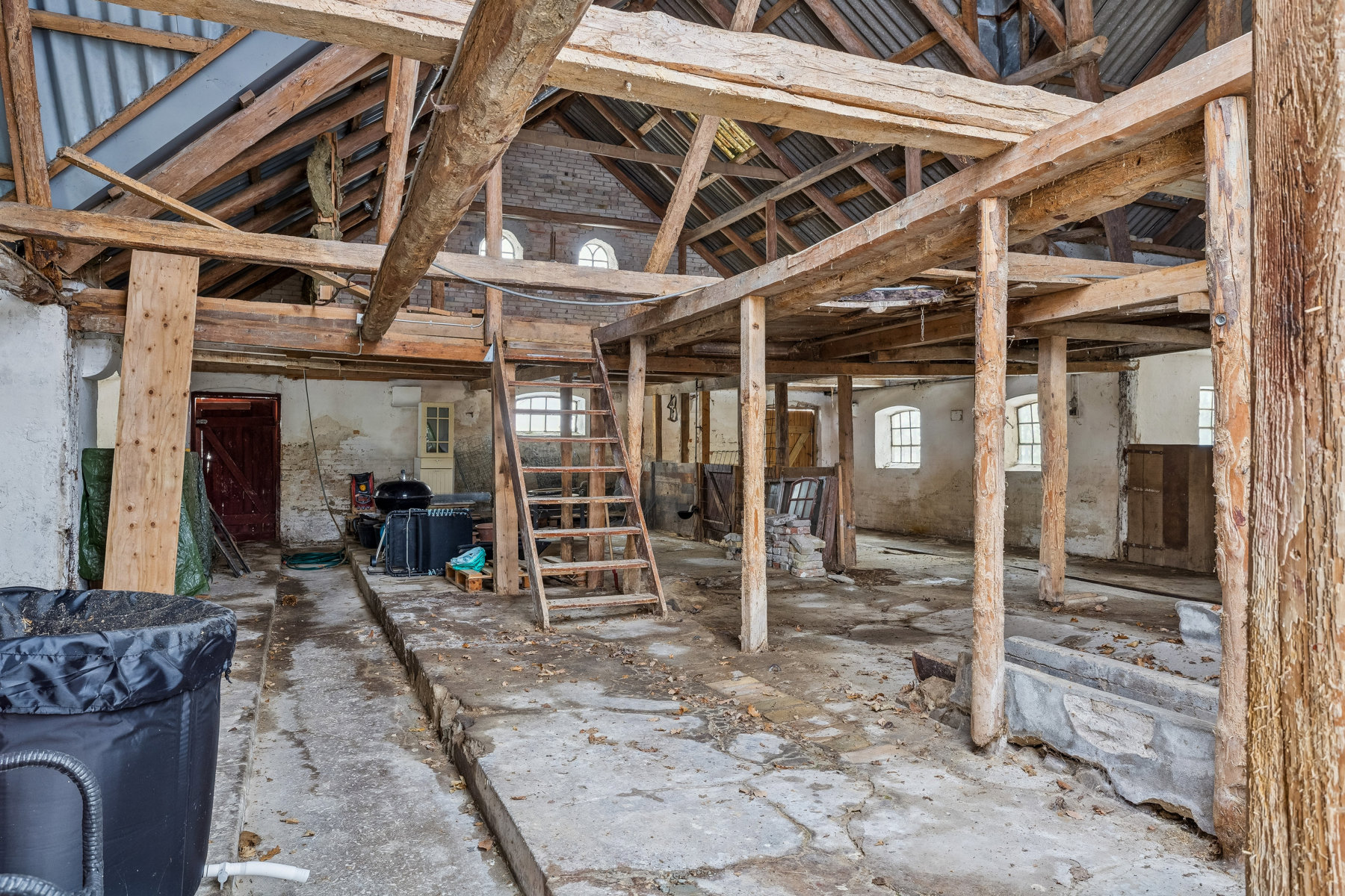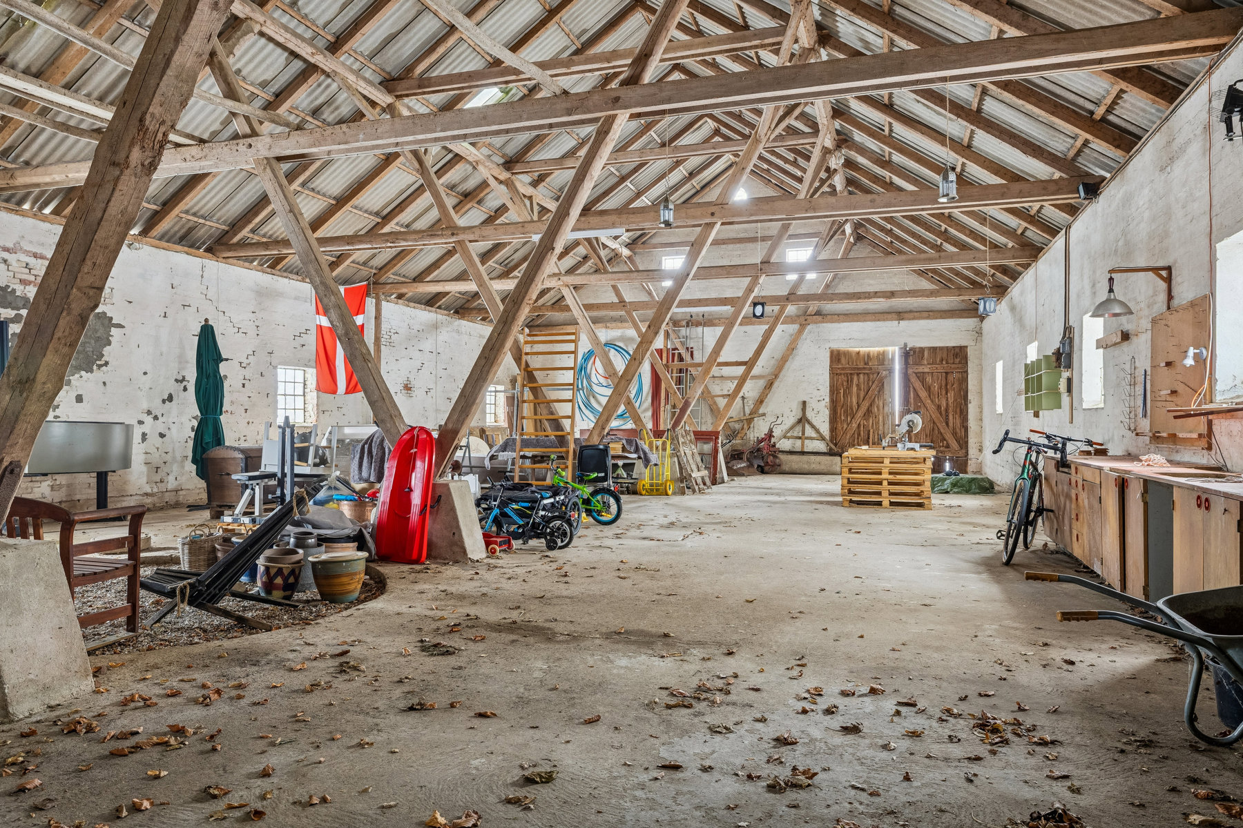 De store, tidligere landbrugsbygninger åbner for et væld af anvendelsesmuligheder. Uanset om drømmen er værksted, opbevaring, bilsamling, hobbylandbrug eller dyrehold, er rammerne til stede.