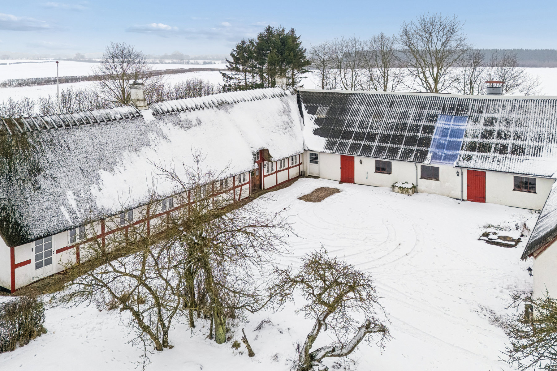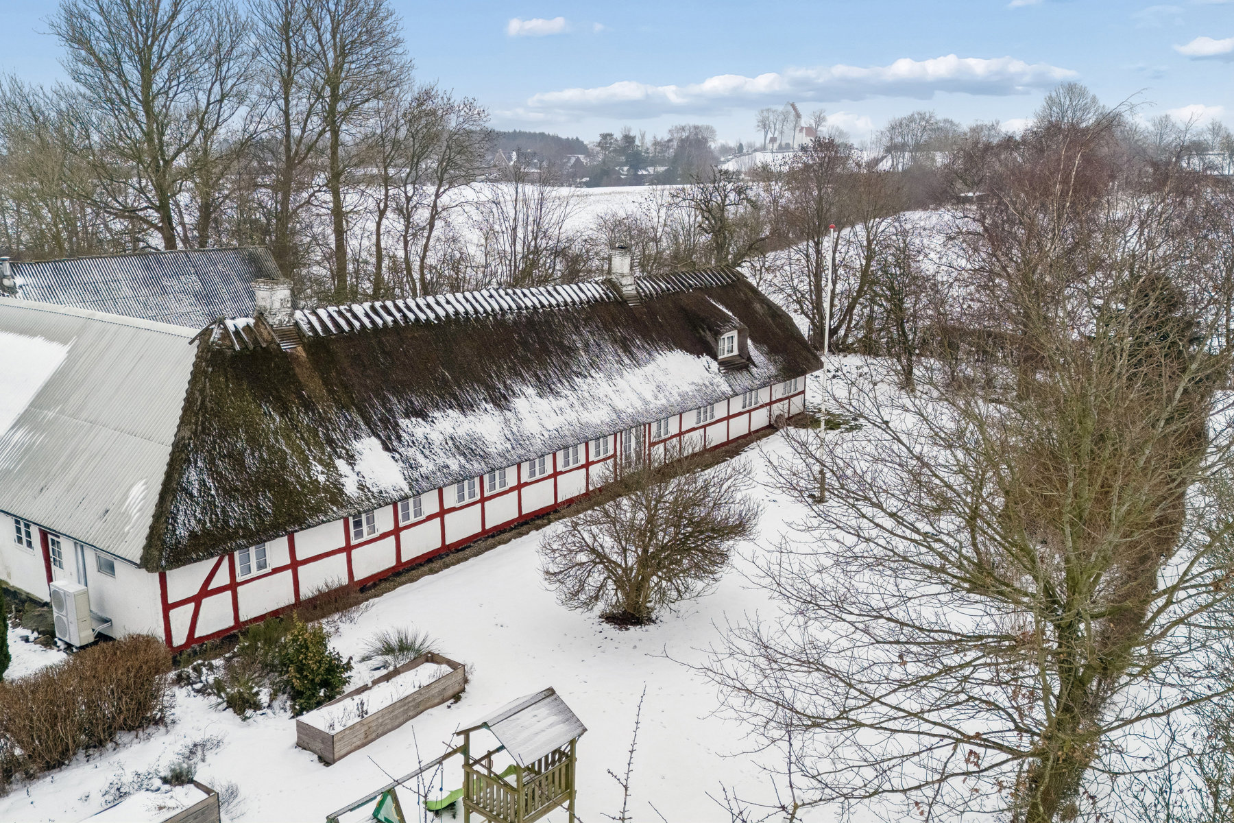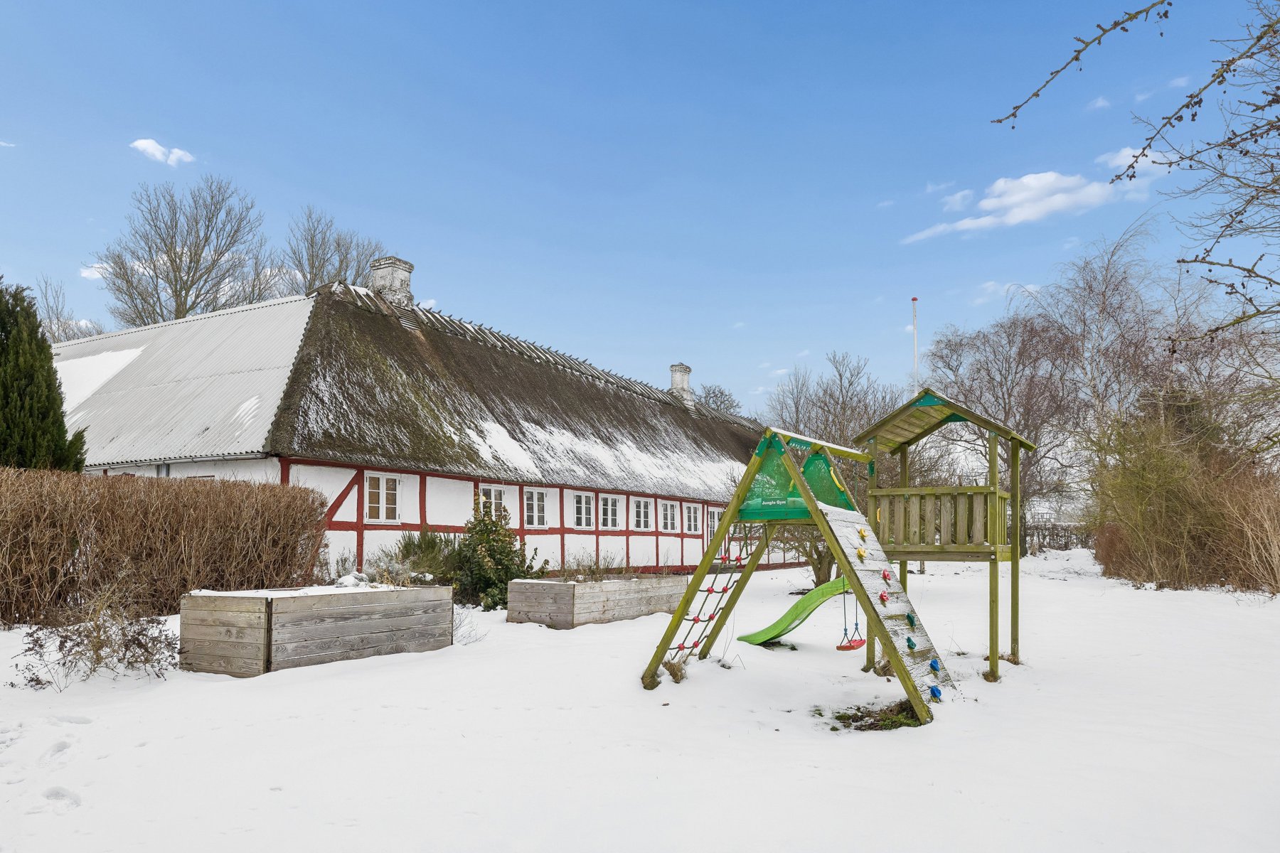 Ejendommen byder på et rummeligt stuehus på 214 m² samt flere udbygninger og i alt 1,3 hektar jord med mulighed for dyrehold. Stuehuset fremstår velholdt og er løbende forbedret gennem årene. I 2017 blev stråtaget mod nord udskiftet, og i 2021 blev stråtaget mod syd fornyet. Samtidig blev der etableret en kvist med vindue på sydsiden, som tilfører soveværelset på 1. sal et flot lysindfald og understreger den klassiske charme.