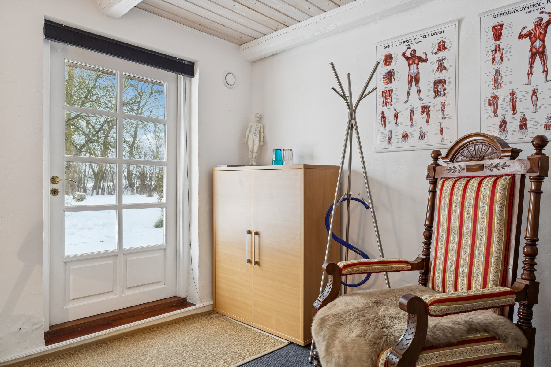 Den hyggelige gårdsplads danner et naturligt samlingspunkt mellem bygningerne, og herudover får du have, orangeri/atelier, træterrasse og god plads omkring dig – alt sammen omgivet af det smukke sydfynske landskab.