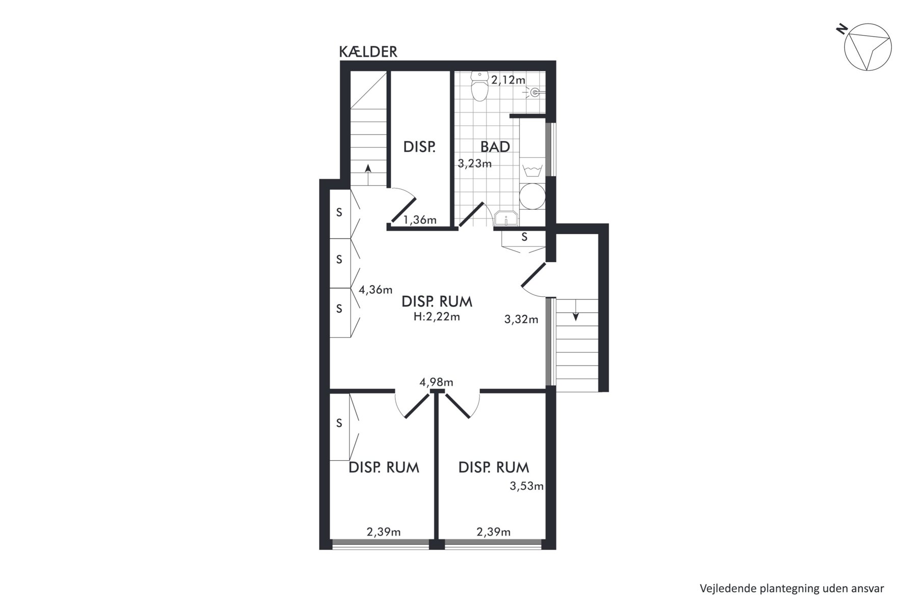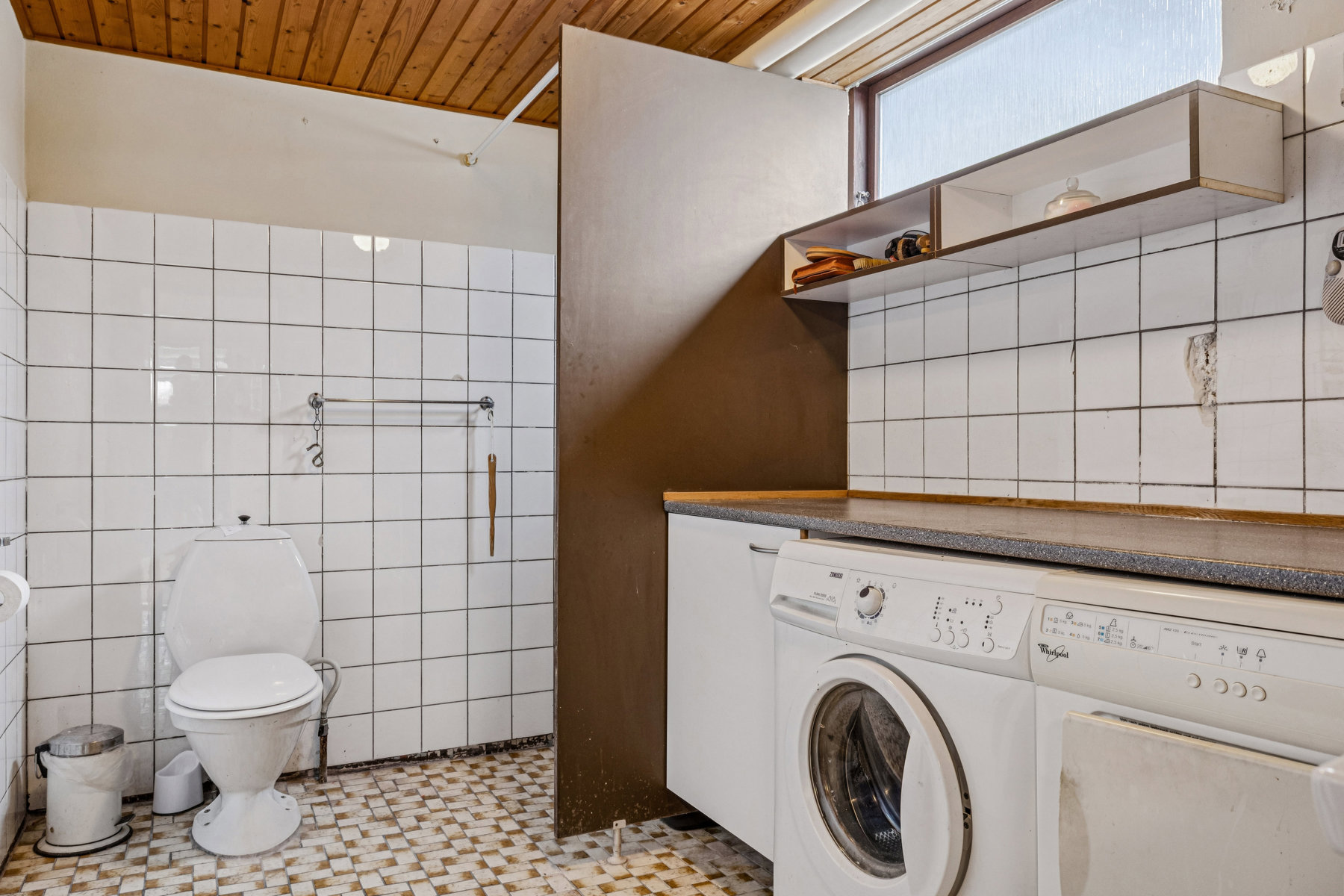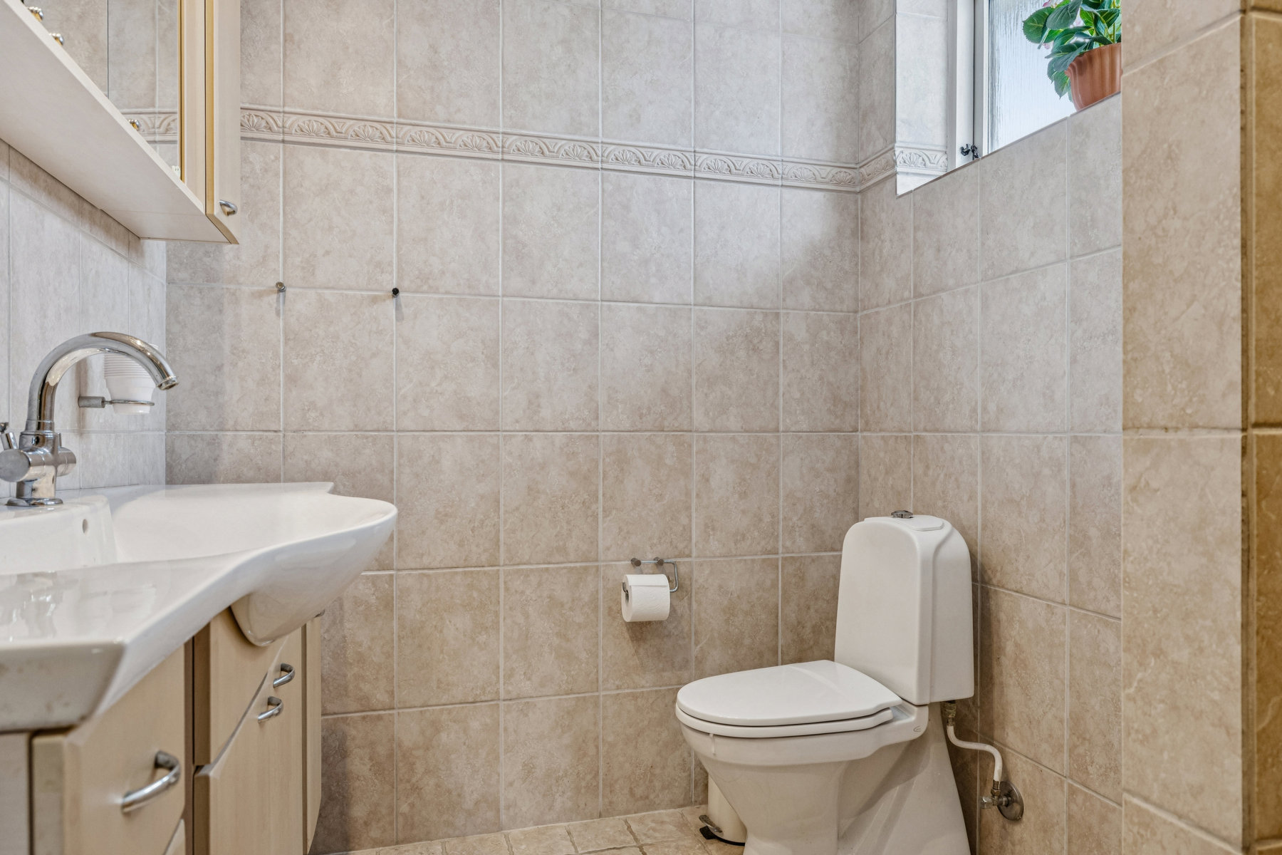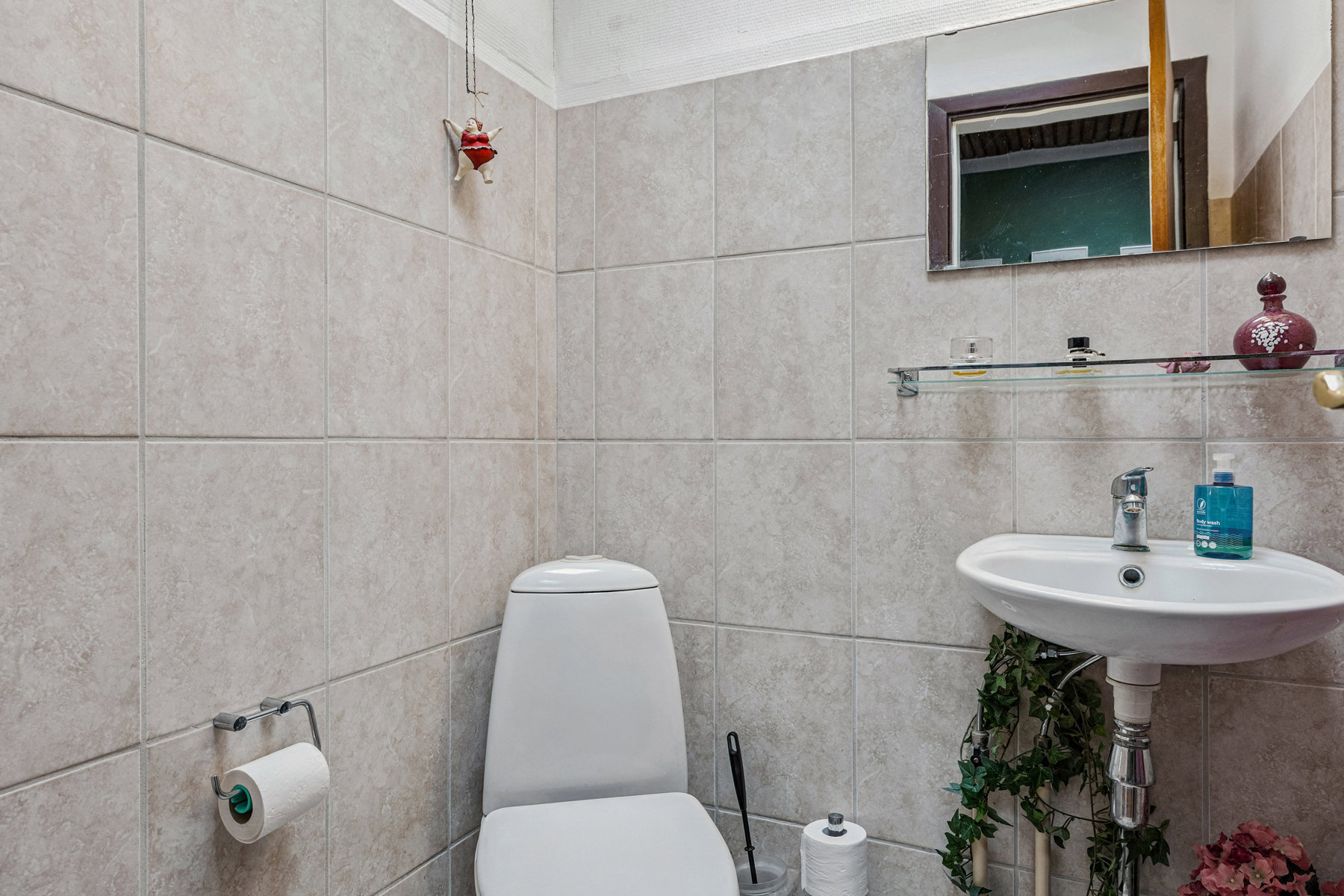 Boligen indeholder også et badeværelse, et gæstetoilet samt en gang med indbyggede skabe. Der venter også mange muligheder i kælderen. Det er en god, højloftet kælder med to rummelige og lyse disponible rum, et multirum med skabe, et depotrum og et badeværelse.