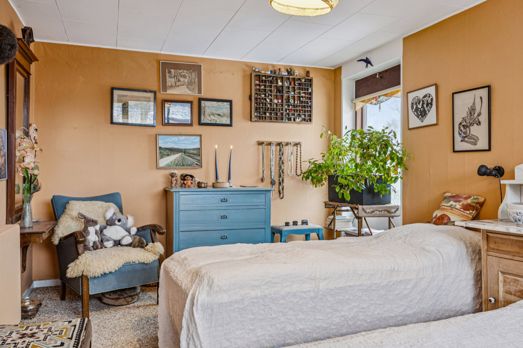 Huset er indrettet med tre soveværelser. Det største er på knap 20 m2 og har fuld skabsvæg samt udgang til egen altan. Et andet værelse ligger lidt for sig selv og har indgang fra gårdhaven - perfekt til et større barn/teenager, der gerne vil have det lidt for sig selv.