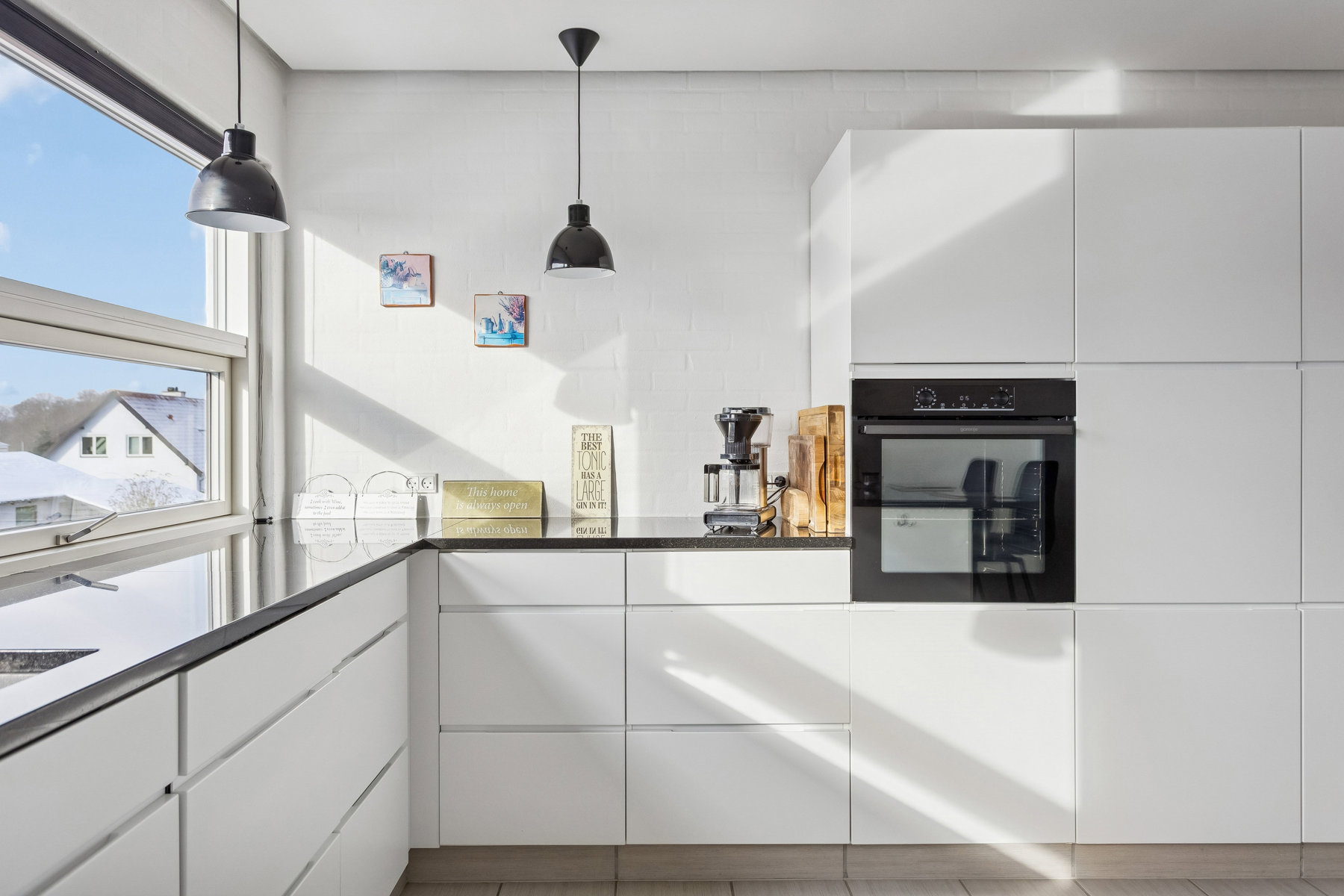 Stueetagen byder på en rummelig entré med udgang til den lukkede have. Hjertet i hjemmet er det lækre køkken-alrum, hvor store vinduespartier giver et fantastisk lysindfald og en betagende udsigt over vandet med Svendborgsundbroen i baggrunden. Her kan I nyde synet af Ærøfærgen, der stille tøffer forbi – en udsigt, der aldrig bliver hverdag.