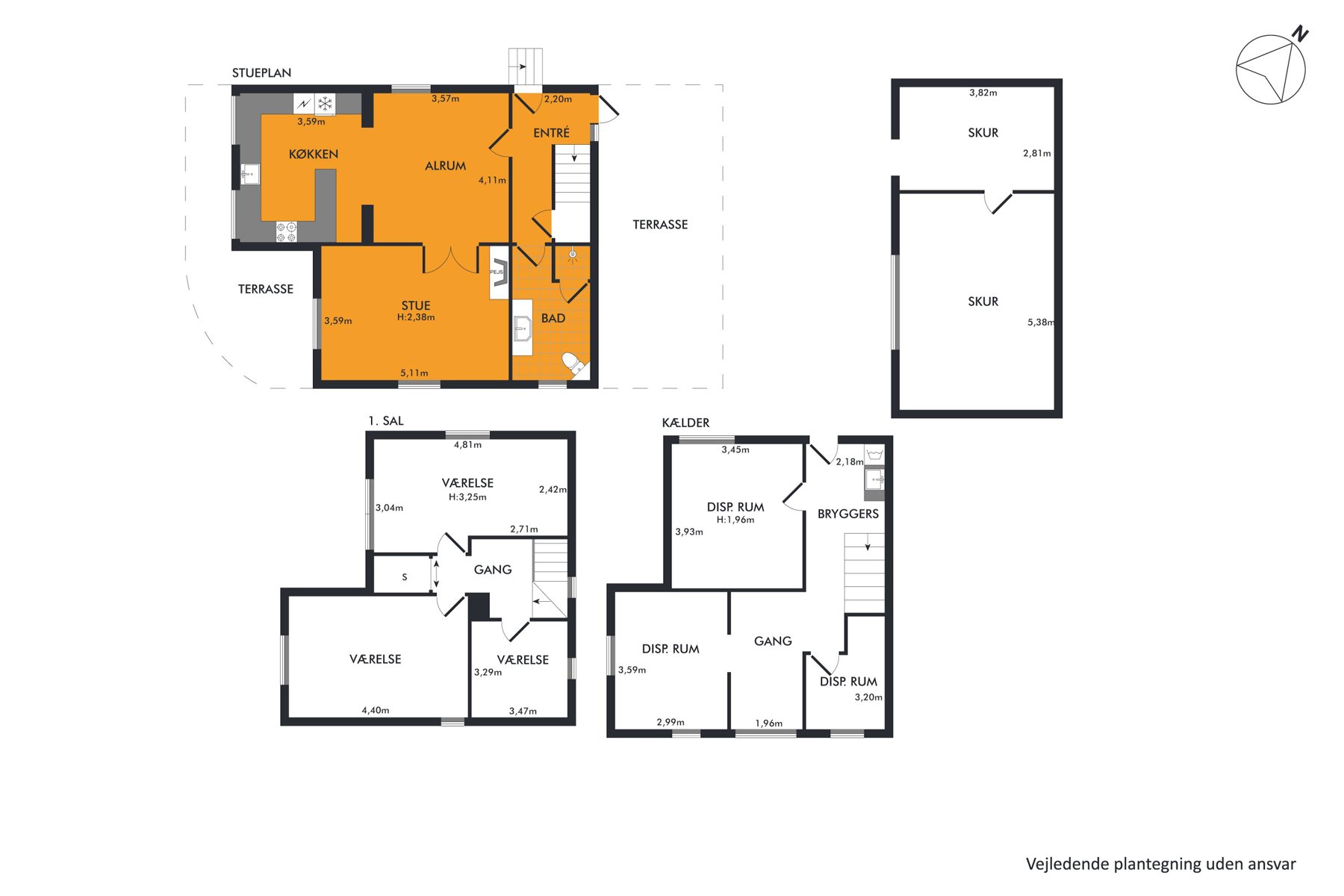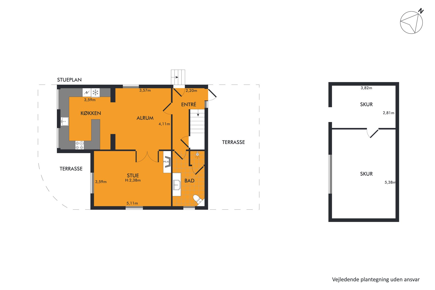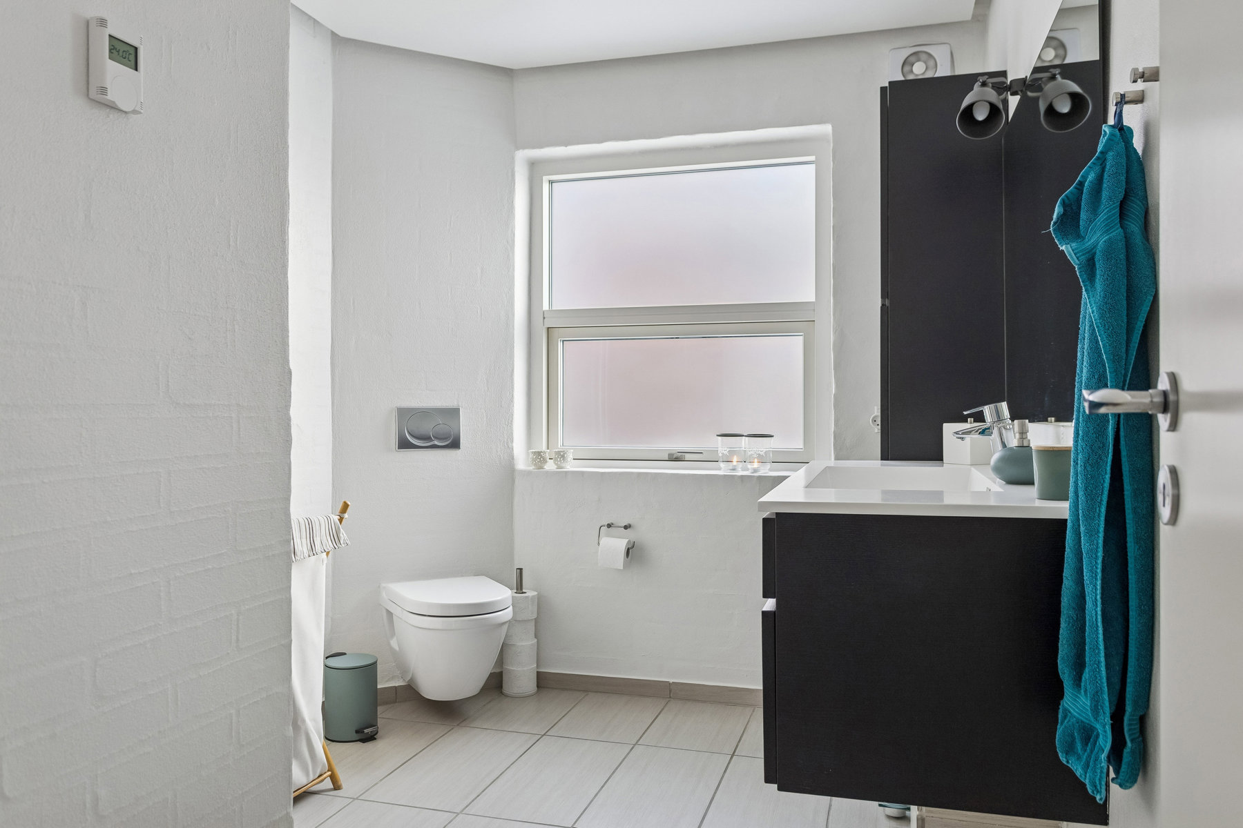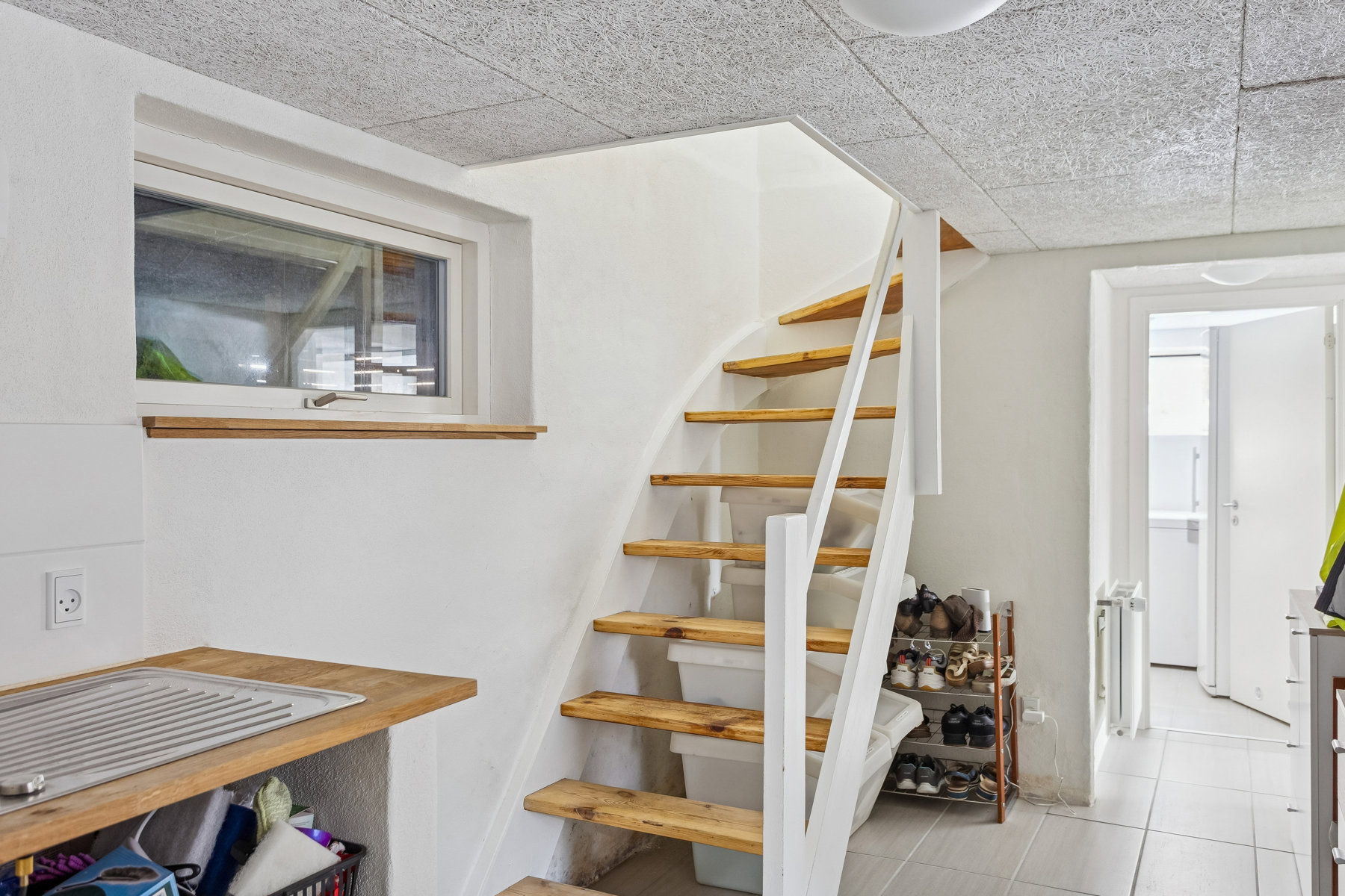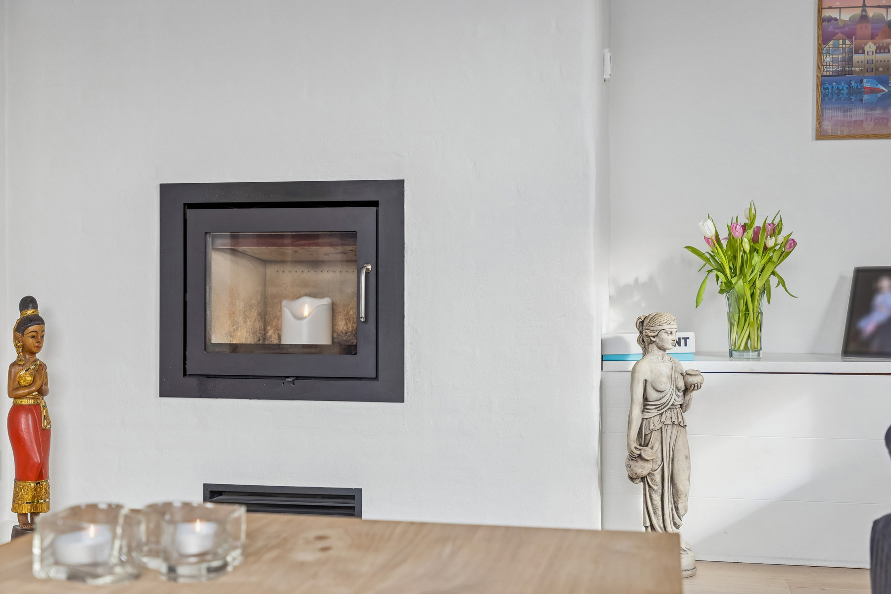 I stueplan finder I desuden en hyggelig stue med indmuret pejs samt et stilfuldt badeværelse. Der er gulvvarme i hele stueetagen, hvilket sikrer høj komfort året rundt.