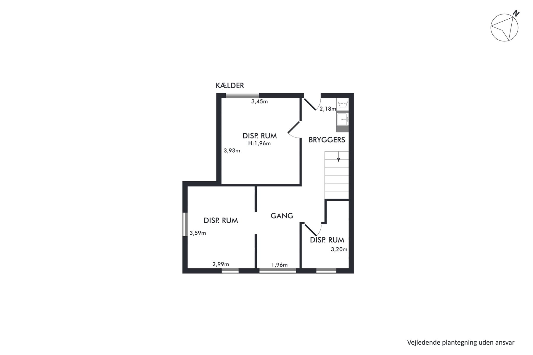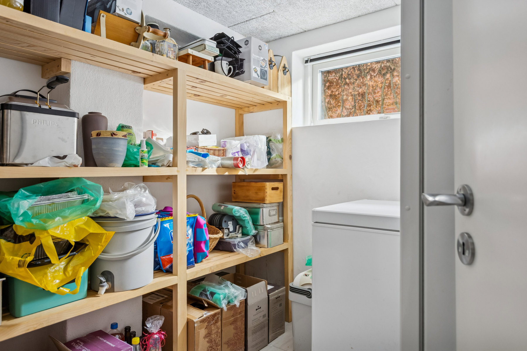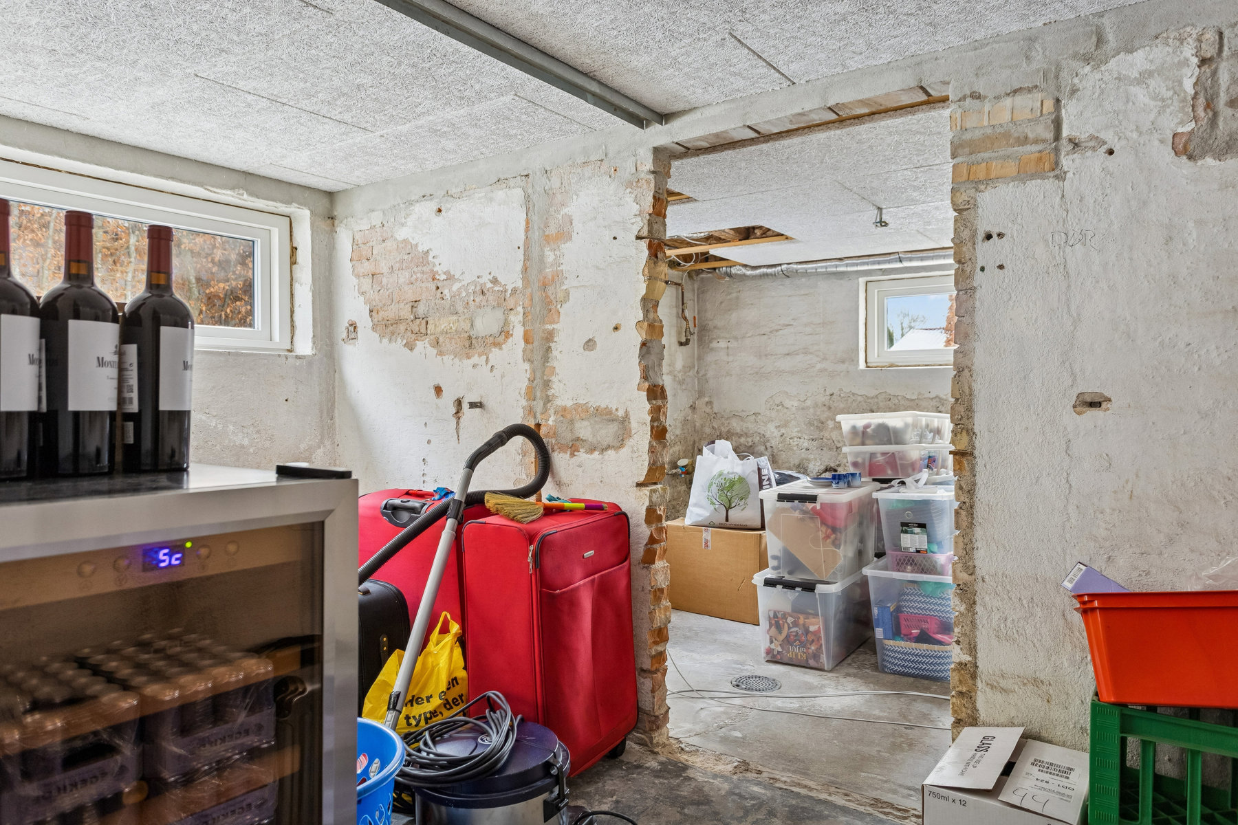 Kælderen fremstår i boligstandard og rummer udover et bryggers og et viktualierum et stort disponibelt rum, som i dag benyttes som gæsteværelse. Der er desuden mulighed for at indrette endnu et ”værelse” og etablere et badeværelse - klinker, der matcher resten af huset, medfølger. I kælderen er der installeret SolarVenti – et soldrevet ventilationssystem, som sikrer et sundt og behageligt indeklima.