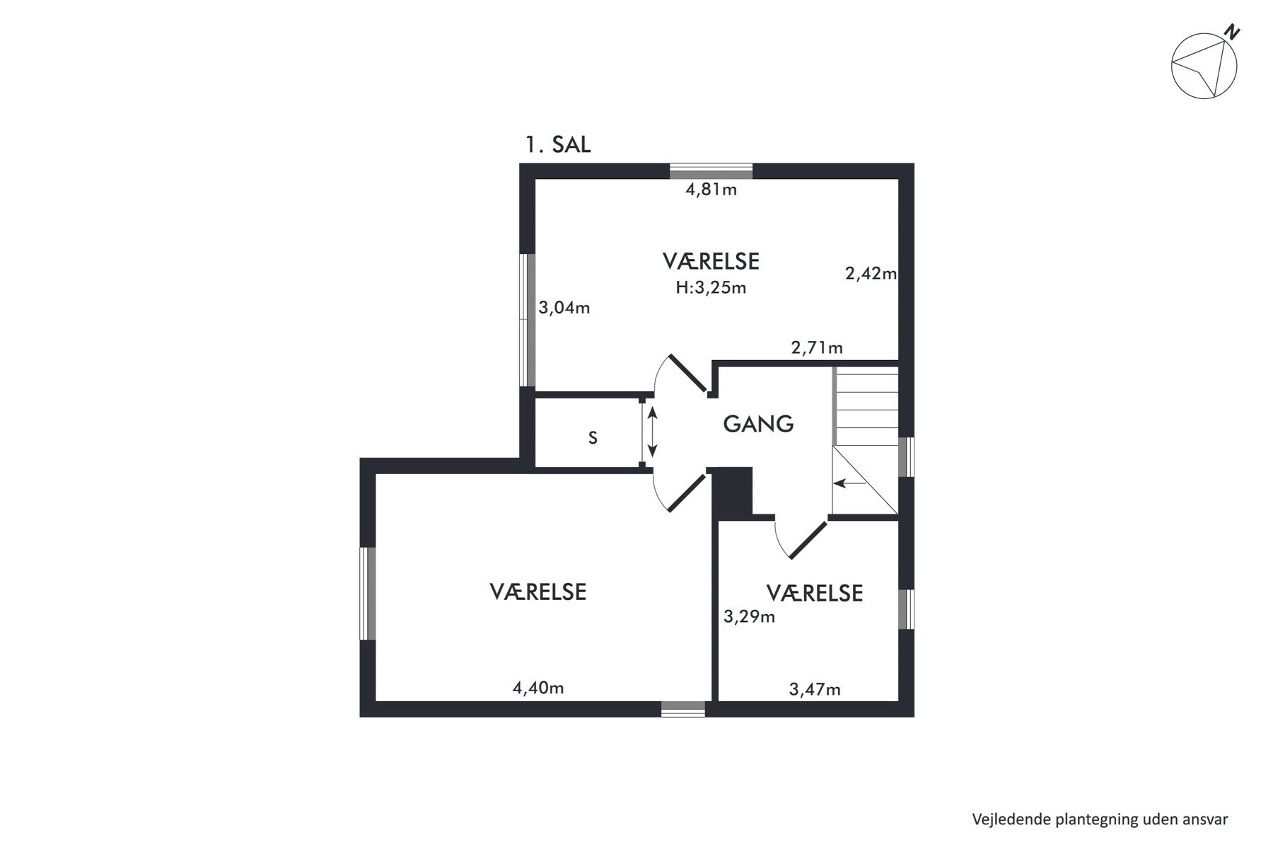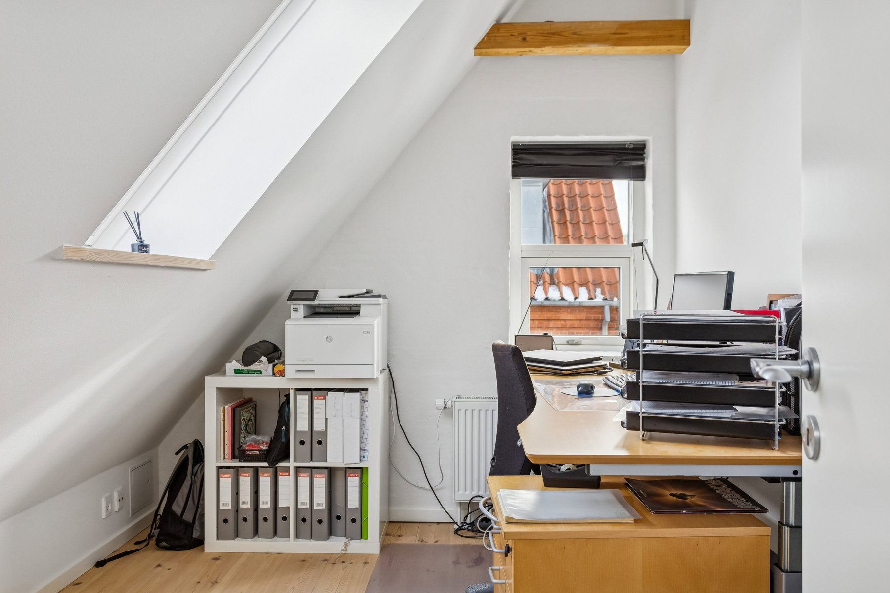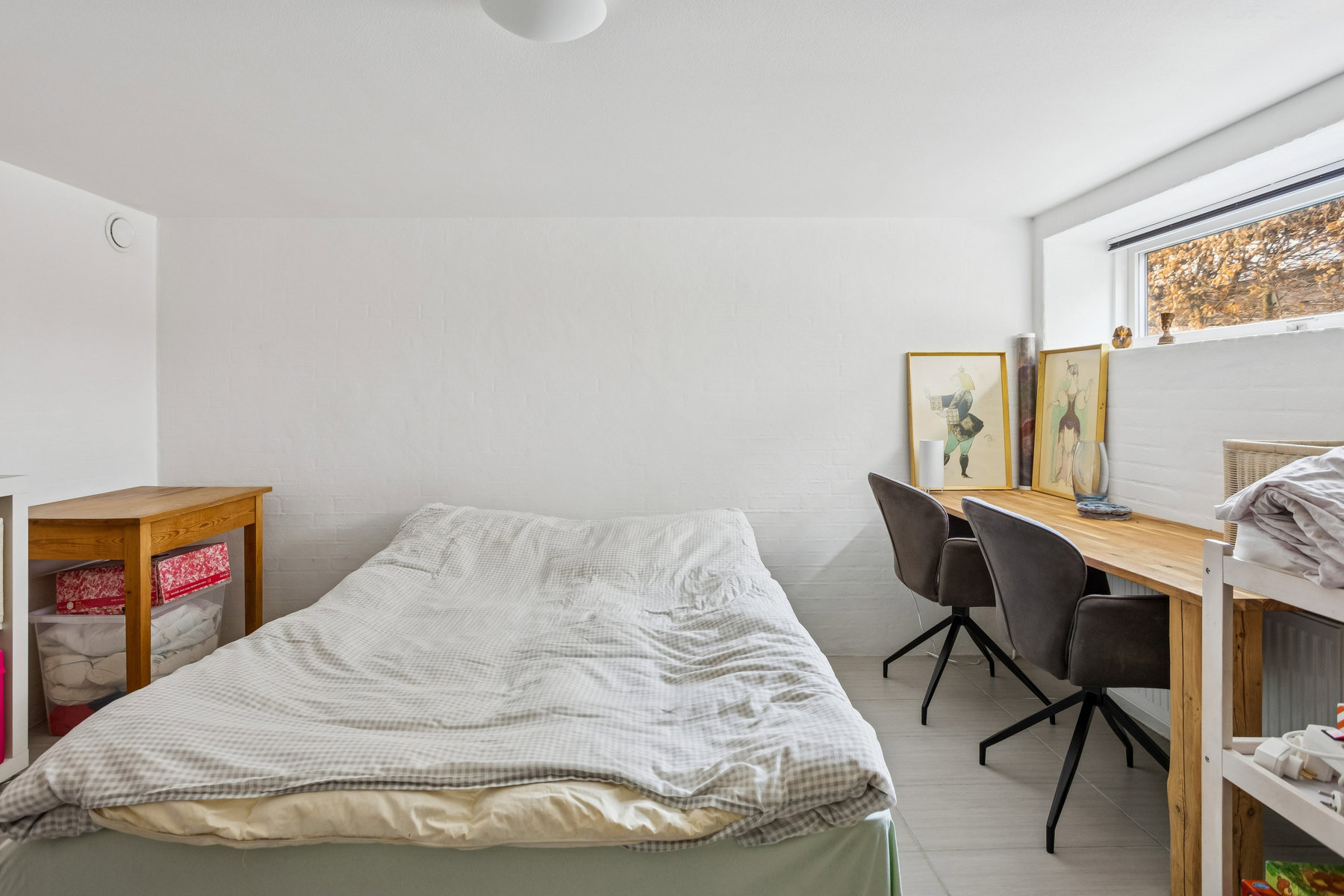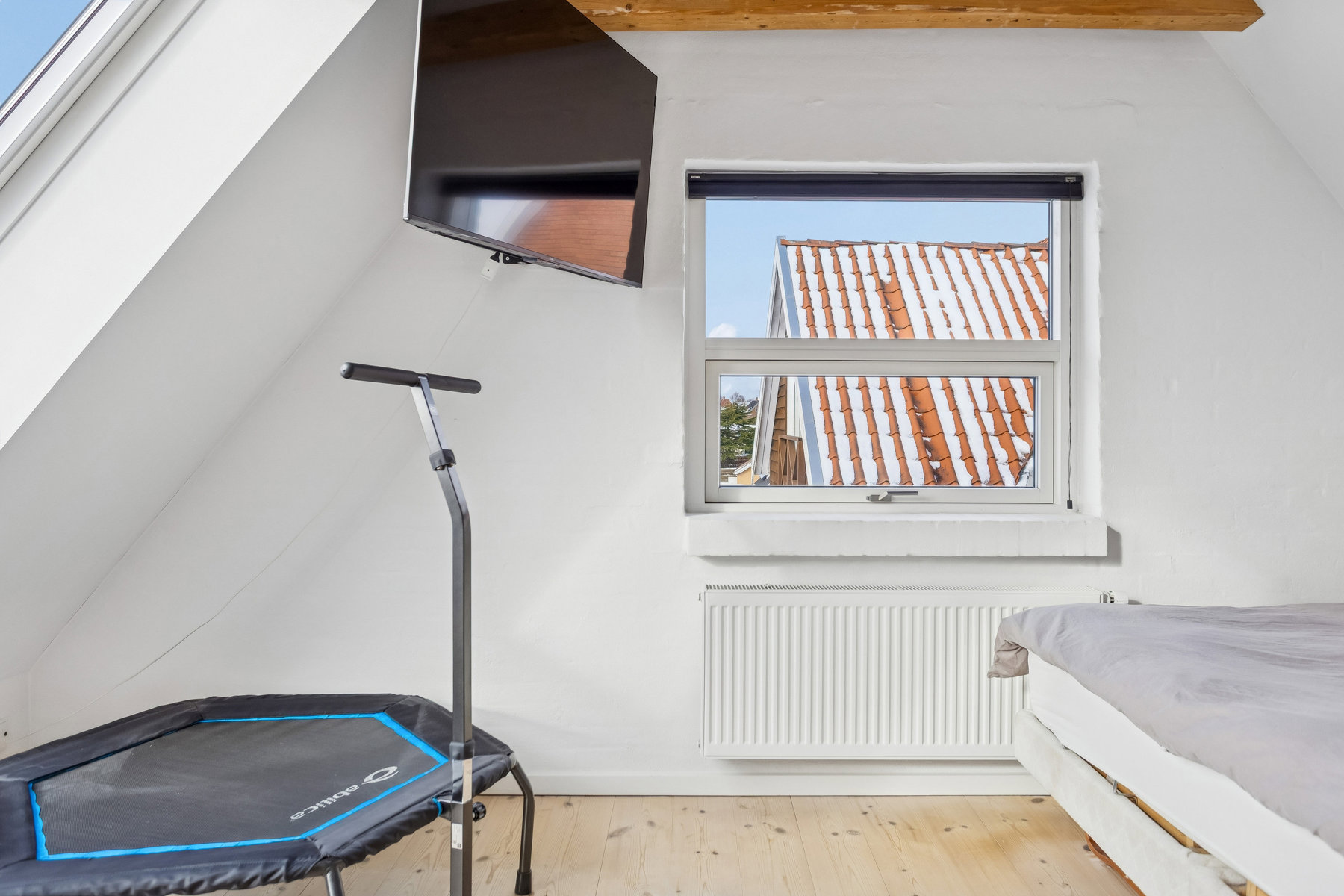 På 1. sal finder I tre gode værelser. Fra soveværelset er der tagaltanvindue, som giver mulighed for at ”træde ud” og nyde den imponerende udsigt over vandet og området. Der er desuden mulighed for at etablere en skøn tagterrasse på det flade tag over køkkenet – her kan udsigten for alvor komme til sin ret.