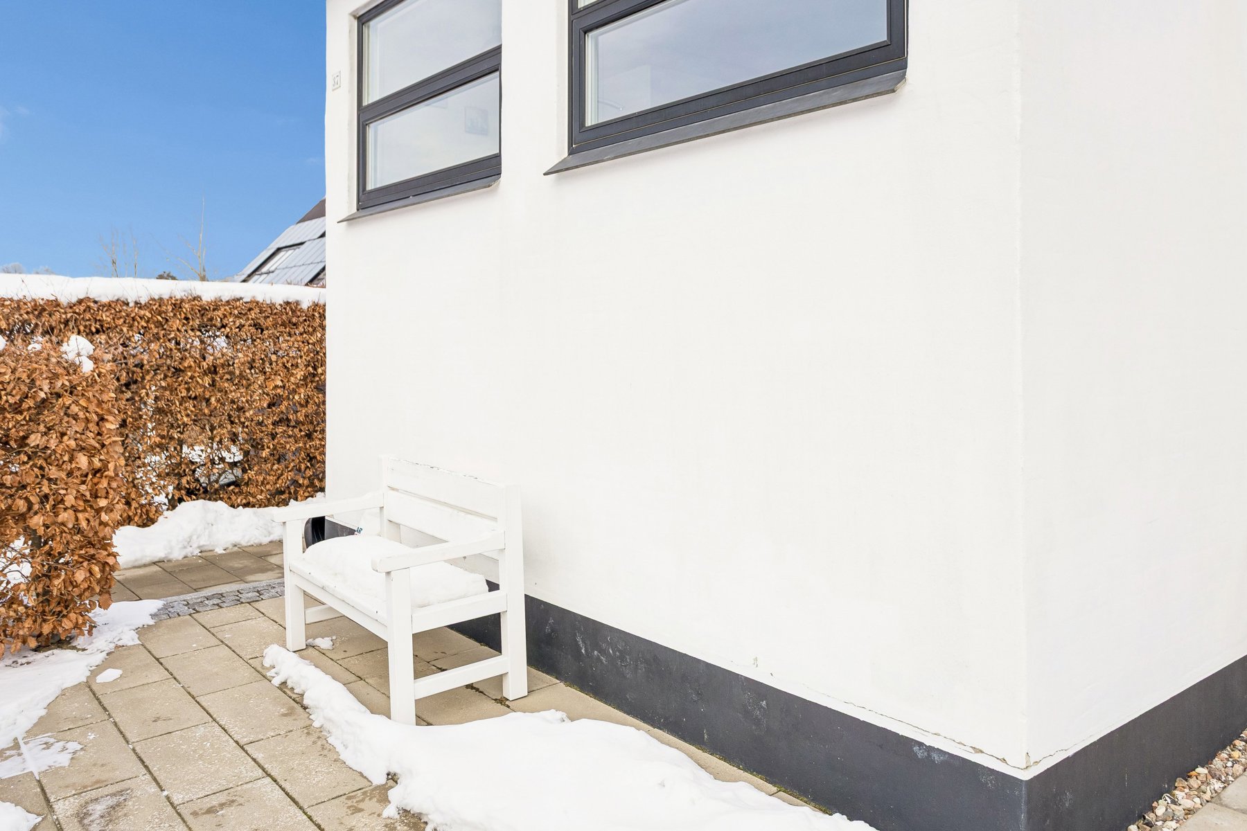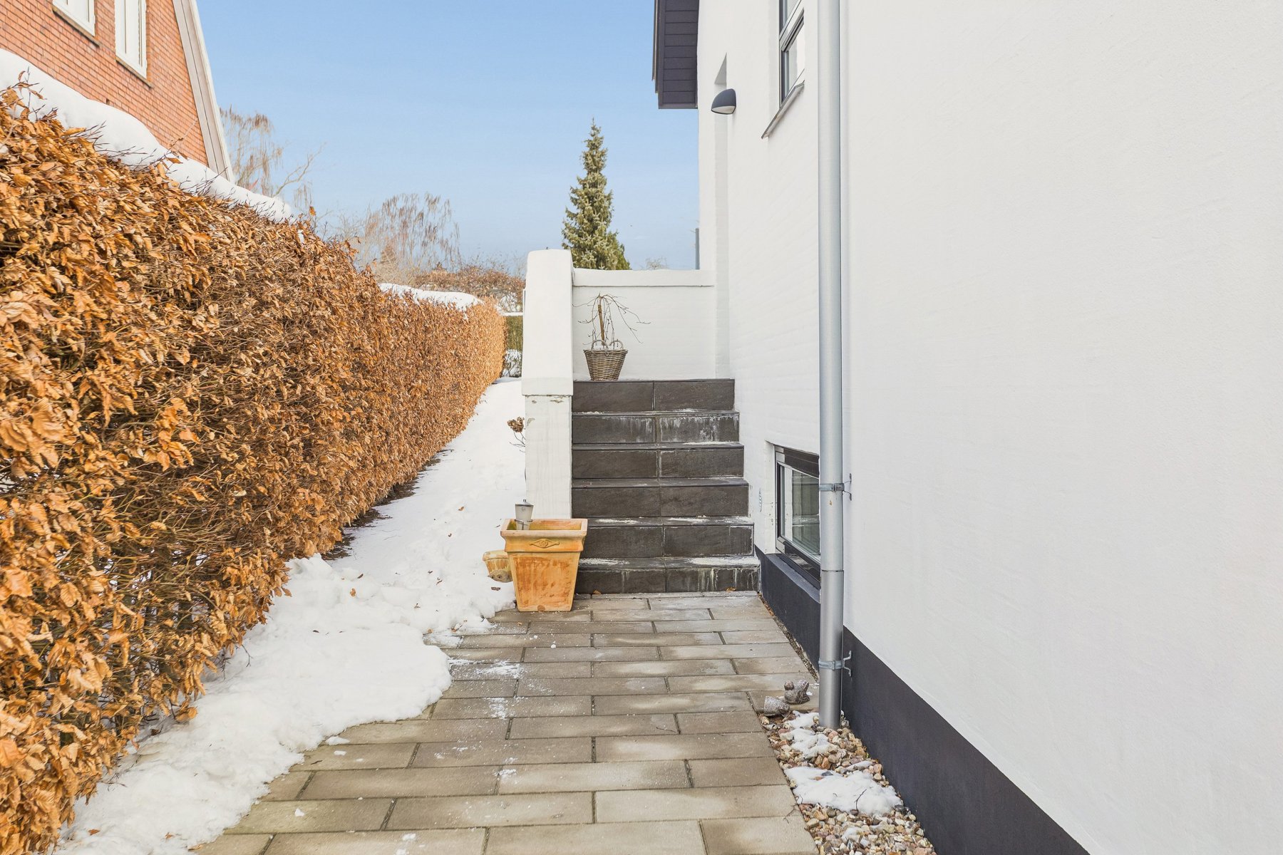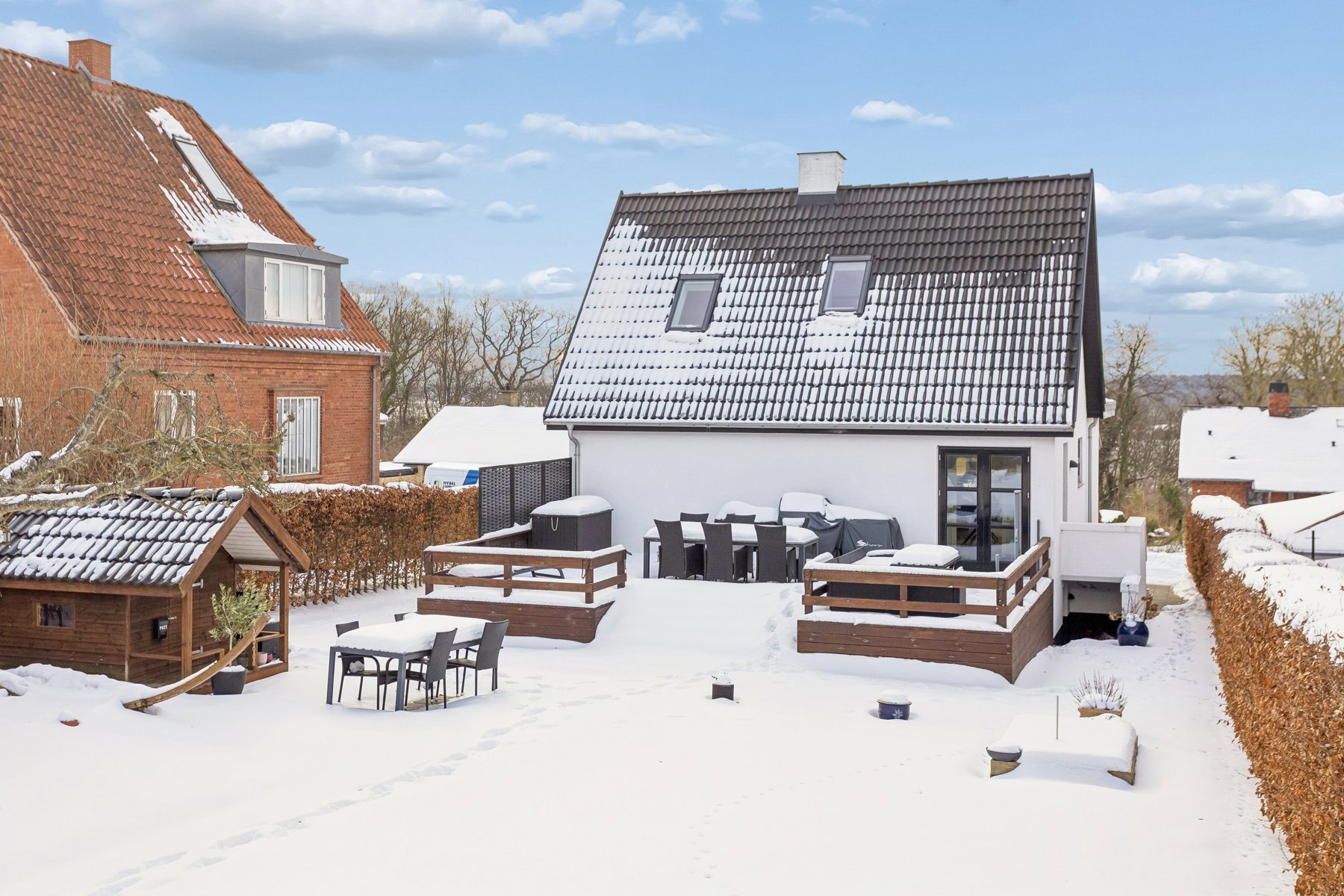 Fra entréen er der direkte adgang til den lukkede og ugenerede have med hævet træterrasse – perfekt til sommerens grillmiddage og afslapning i solen. Haven byder desuden på fine flisearealer og et hyggeligt legehus.