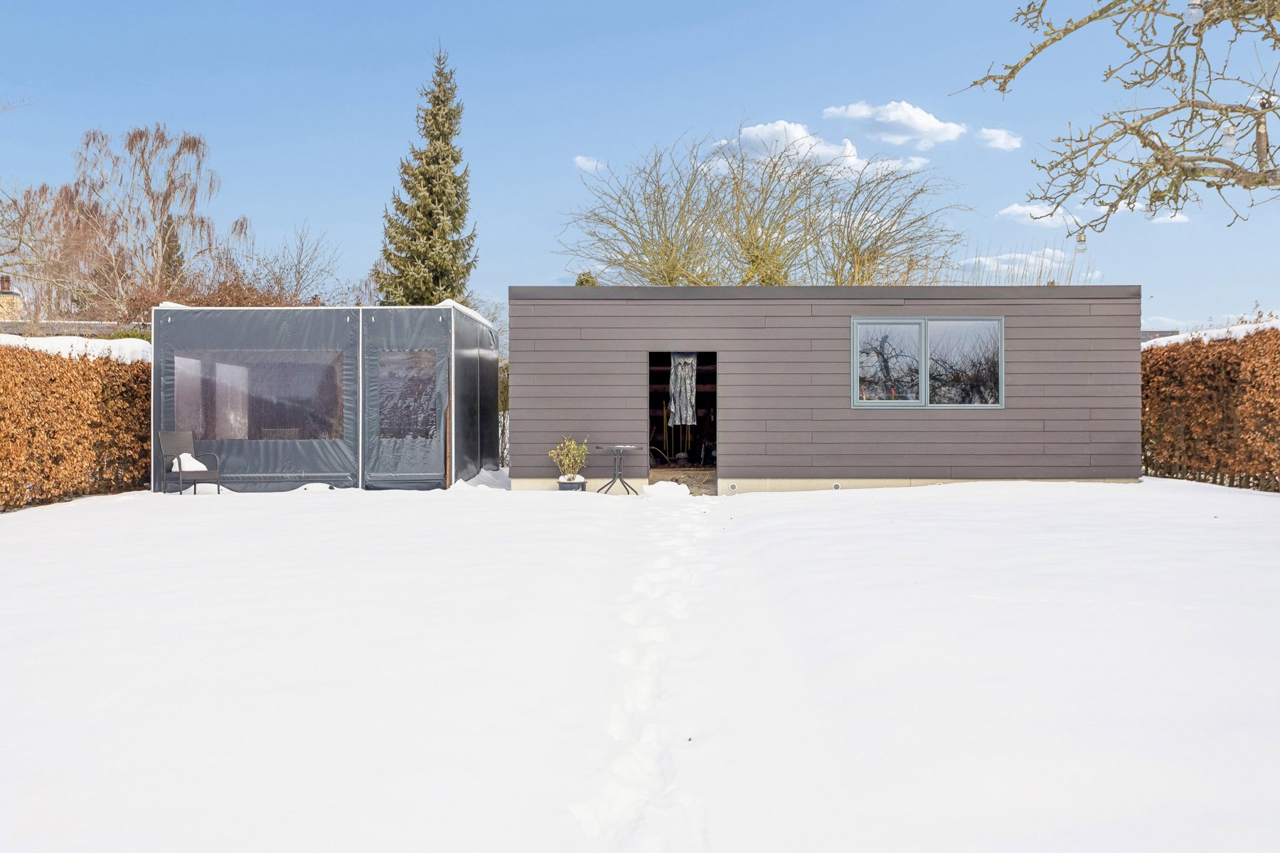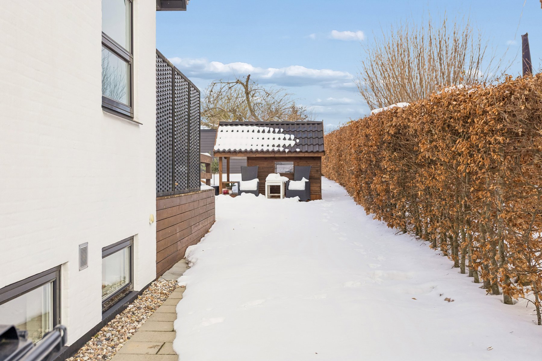 Bagerst i haven ligger et stort udhus på 34 m², opført i 2016, som giver masser af plads til hobby, værksted eller opbevaring.