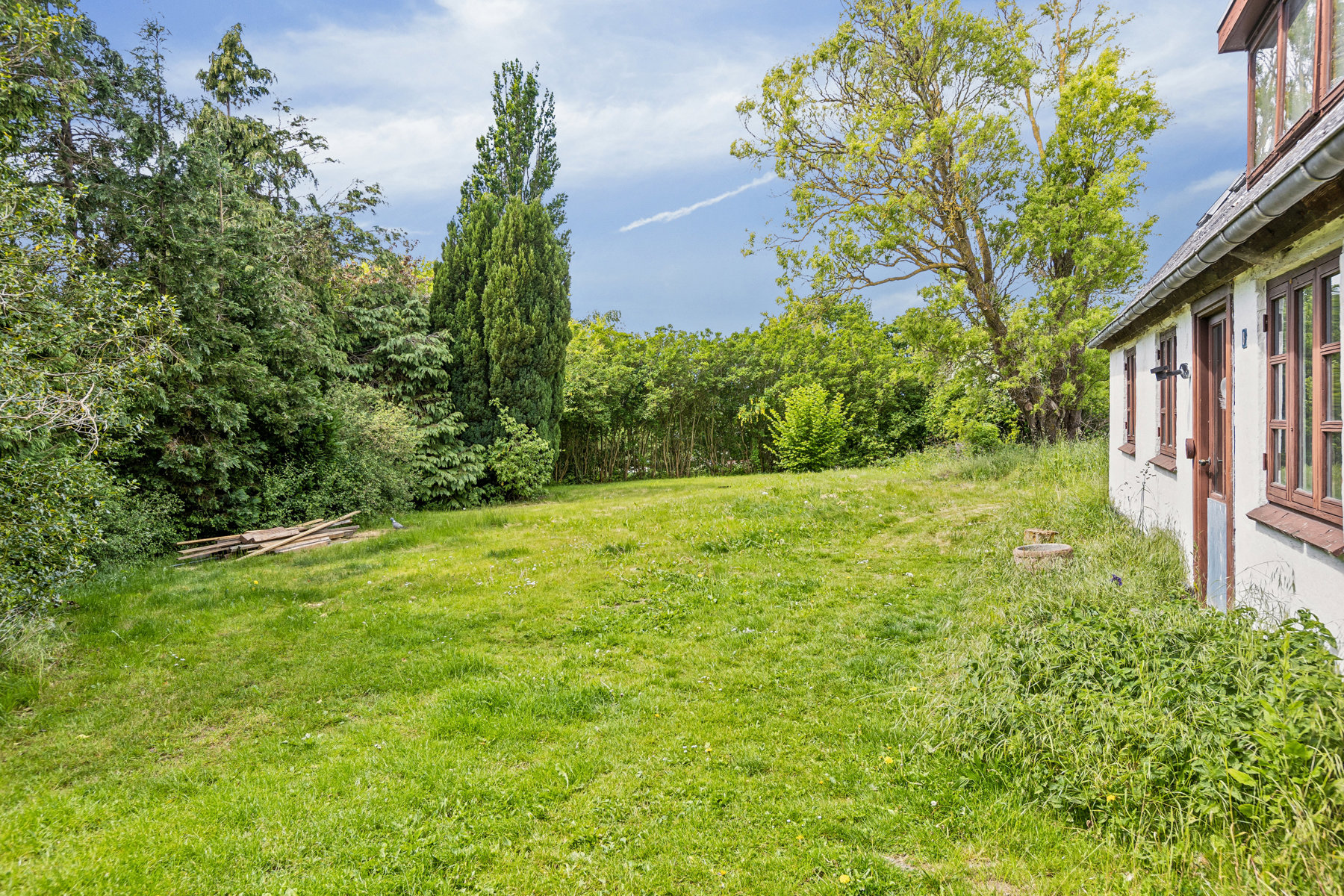 Mulighederne på den 7.139 m2 let kuperede naturgrund er mange, rigtig mange. Måske er man en lille, nystartet familie, der har lyst til at trække stikket og afprøve en ny måde at bo på. Tættere på naturen, tættere på havet og med god plads omkring sig. Hvad enten I vil renovere på det gamle hus, eller I foretrækker at starte forfra og bygge nyt, er det smarte, at I fint kan bo i annekset igennem processen.